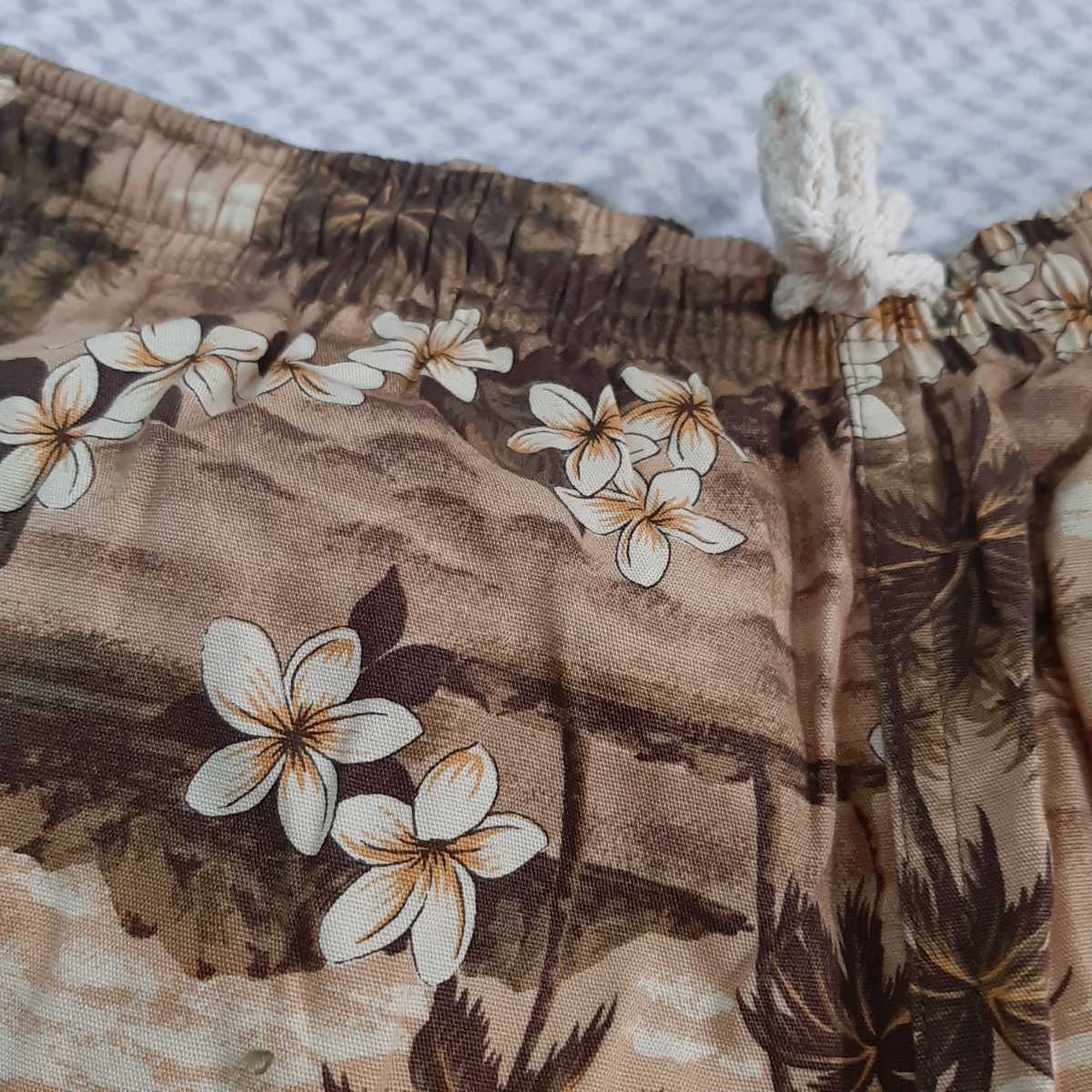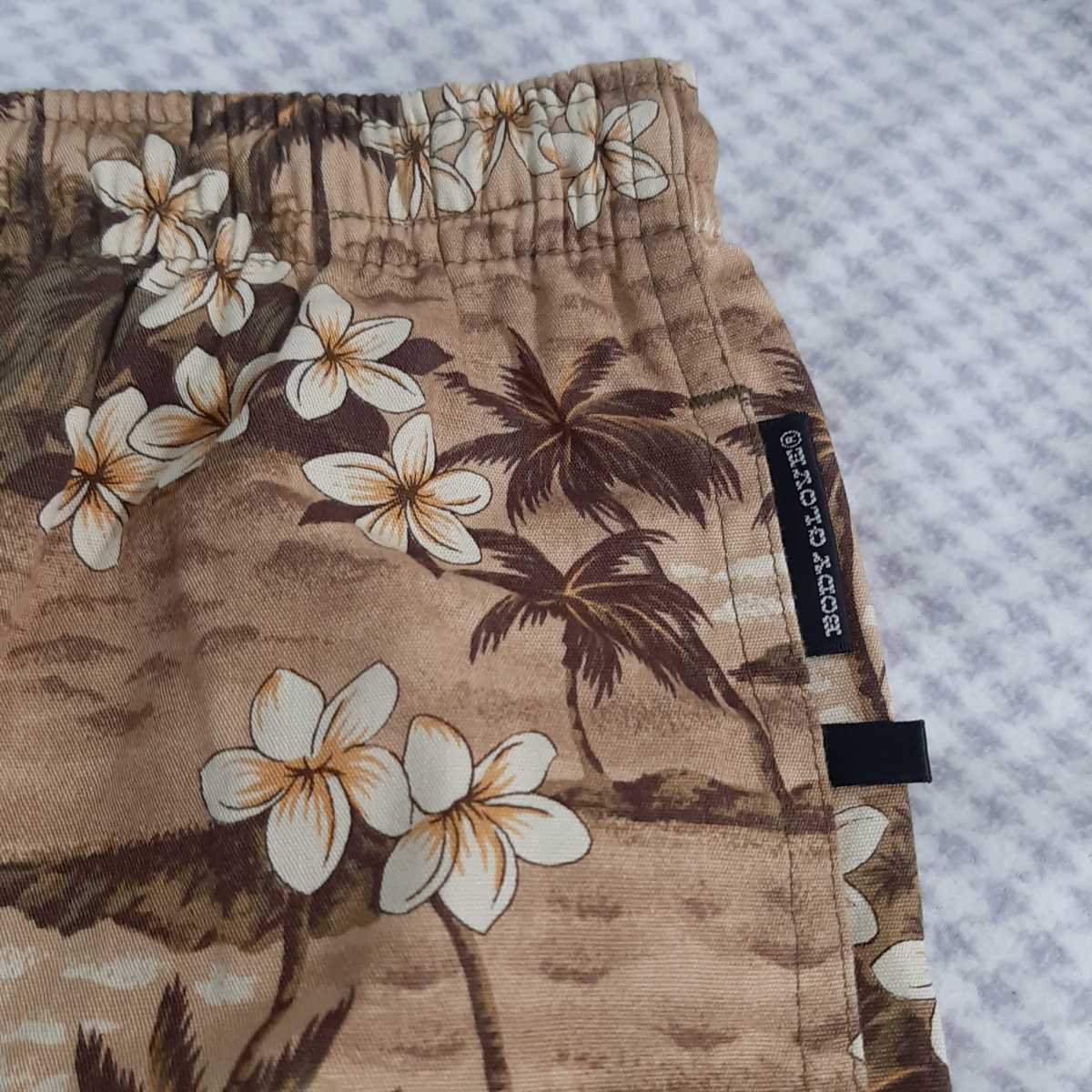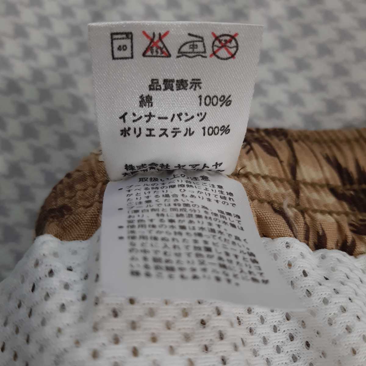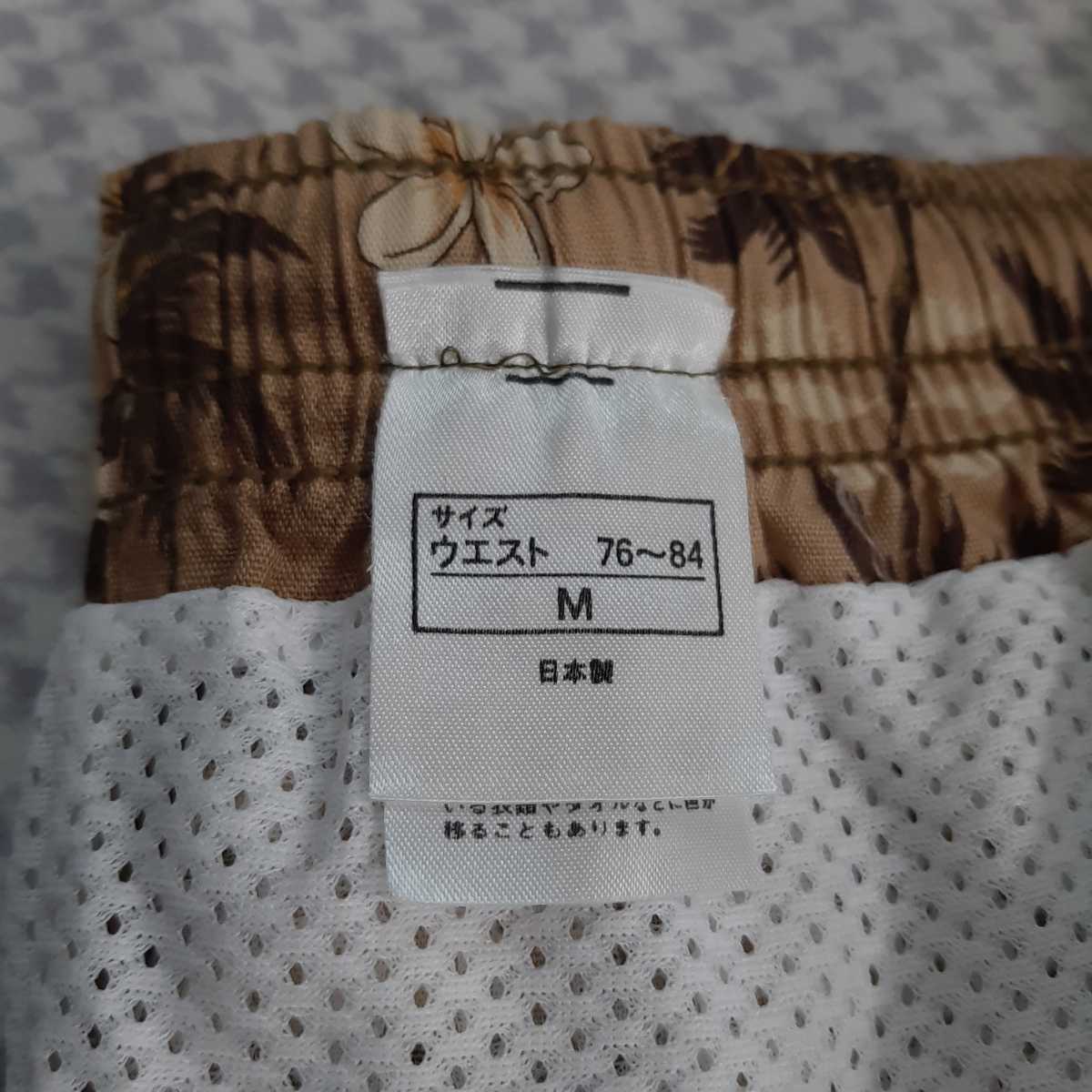 メンズ 水着 日本製 ヤマトヤ Mサイズ ウエスト76-84 ベージュ系 プルメリア柄 ヤシ柄 210709