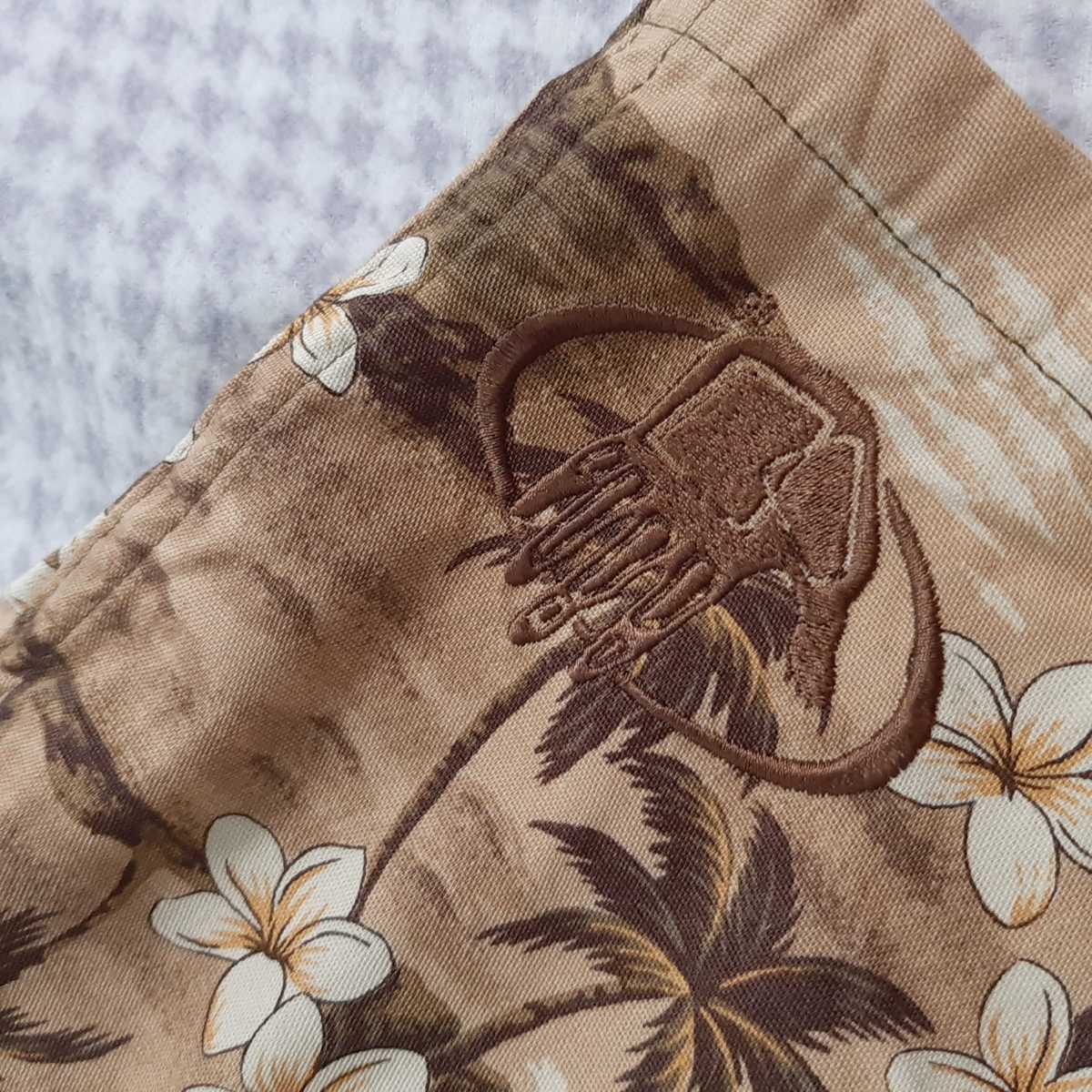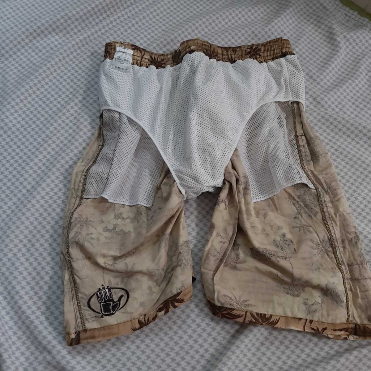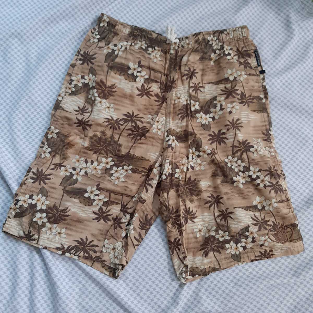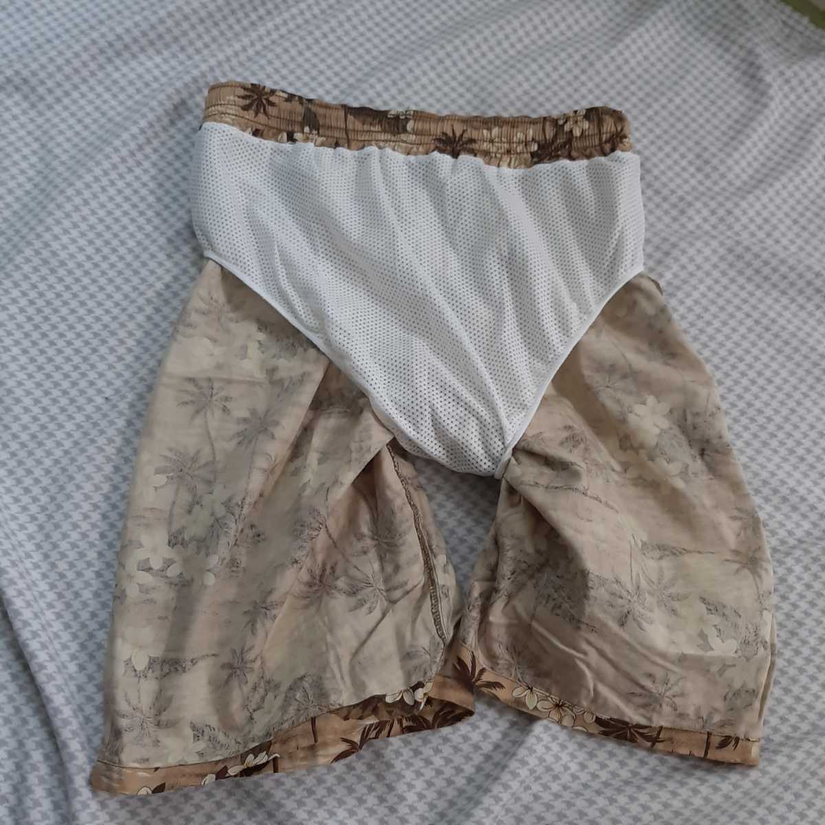メンズ 水着 日本製 ヤマトヤ Mサイズ ウエスト76-84 ベージュ系 プルメリア柄 ヤシ柄 210709