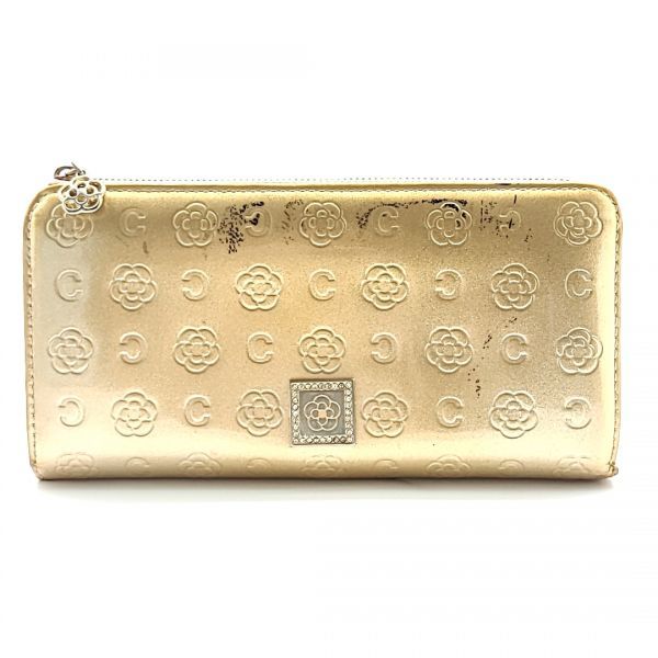 1円~ クレイサス CLATHAS 長財布 L字ファスナー エナメル シャンパンゴールド系 X86-4536-s0