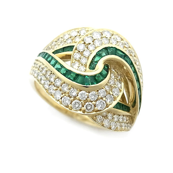 【緑屋質屋】ピキョッティ(PICCHIOTTI) ダイヤ・エメラルド リング K18YG【中古】