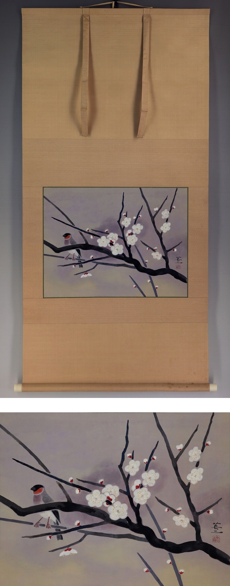 | №2105041 名品【真作】戸田英二【初春】◆絹本◆共箱◆二重箱◆掛軸 | |
