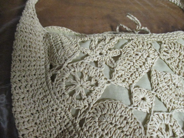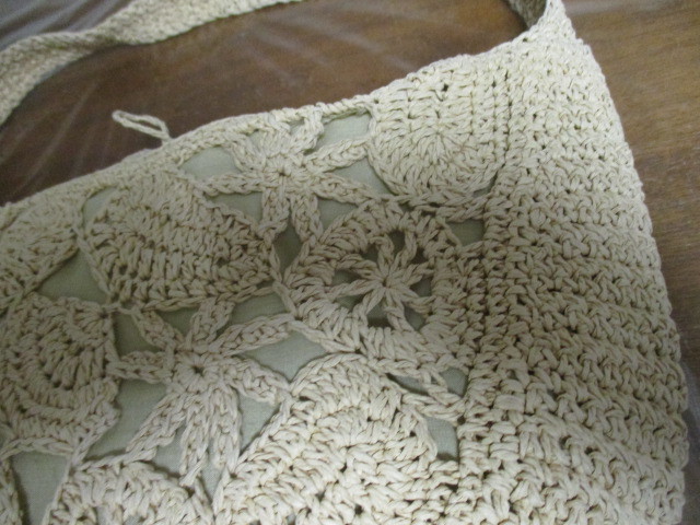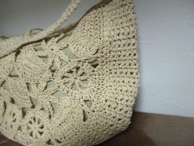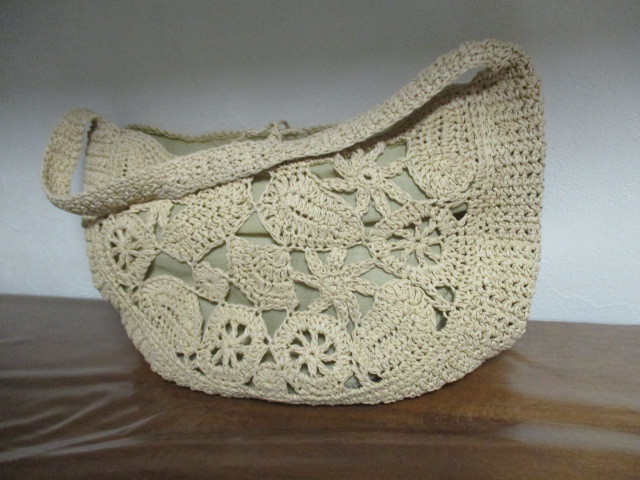 | 商品紹介 | 明るいベージュカラーの 半円型麦わらバッグです。 中央の編み込み模様もアクセントになっています。 B5が入るぐらいのサイズです 肩掛けも可能です 内側は ベージュの コットン素材です 入り口は紐で結ぶ形になります。 外ポケット 内ポケット なし 素材は表記がないので天然素材かどうかわかりません。(気にならない方の入札を希望します。) *規定サイズに合わせるため折りたたんでの発送となります。 |