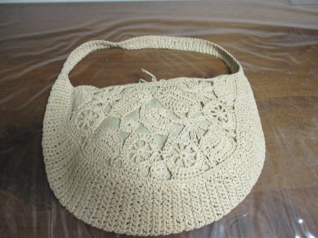 | 商品名 | ベージュ 半円型 麦わらバッグ(USED)70821 |