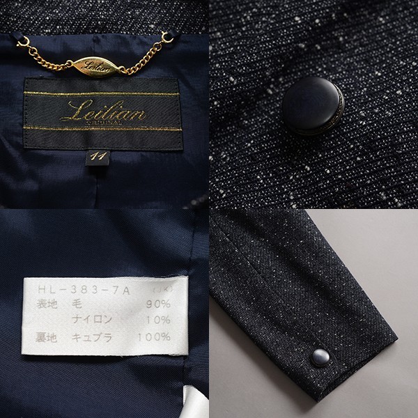 ご覧いただきありがとうございます。 気持ちのよいお取引となるよう心がけておりますので どうぞご安心ください。 Leilian/レリアンの日本製/ツイードジャケットです。 お色は紺です。 洗練されたレリアンらしい色使いが印象的な、落ち着いたデザインです。 クラス感ある大人のエレガントなスタイリングに仕上げてくれます。 オン・オフ問わずに着用できる一着です。 是非、お手に取ってお確かめください。 サイズ表記は 11(レディース)です。 実寸も合わせてご参考ください。 ■着丈:59.0 cm ■身幅:55.0 cm ■肩幅:43.0 cm ■袖丈:55.0 cm (すべて平置き採寸です。多少の誤差はご了承下さい。) 中古品のためそれなりの使用感はございますので、 ご理解いただいた上でご入札くださいますようお願いいたします。 ※内側のボタンが1つ欠けています。 L-10611 |