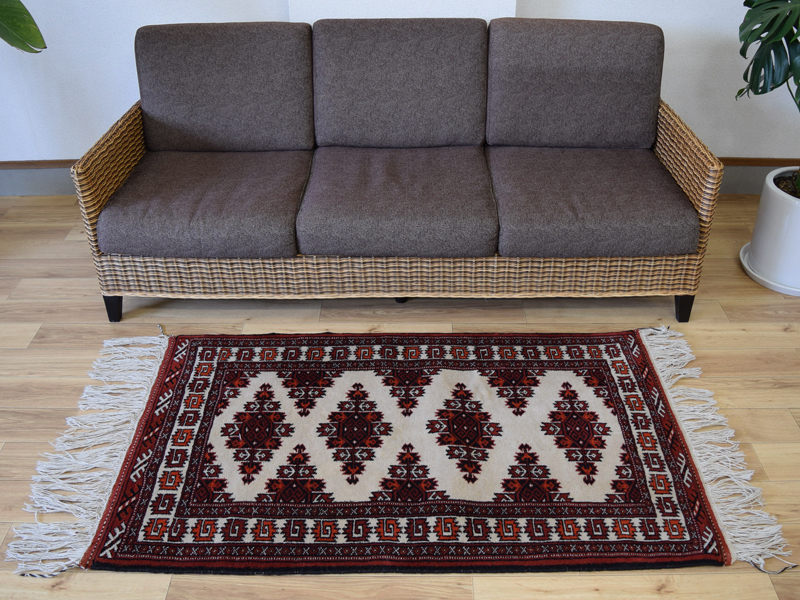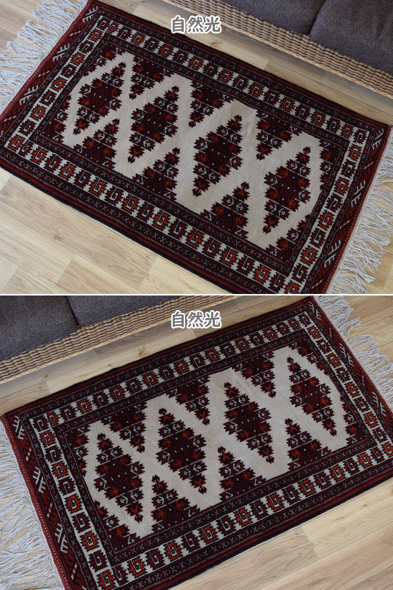 新品 ペルシャ 部族絨毯 トルクメン 縦1.3m 132 x 85 cm No.F119 天然 ウール 手織り ラグ 玄関 マット カーペット