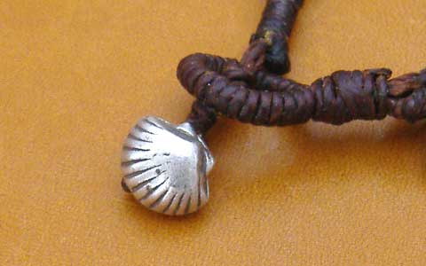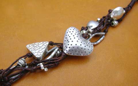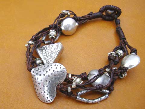 ◆カレン族シルバーブレスレット マクラメ茶8a・5連◆ハート&三角ビーズ |