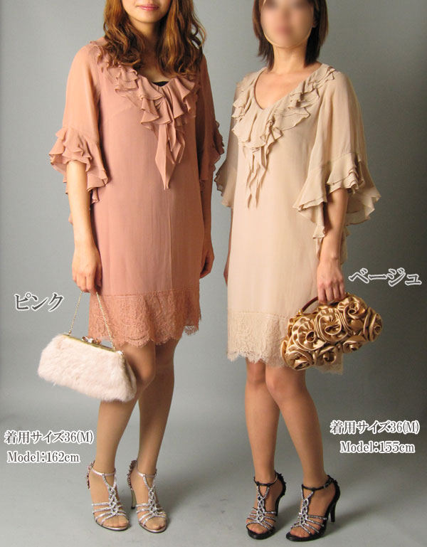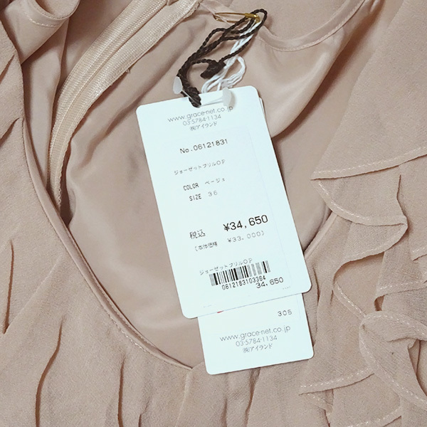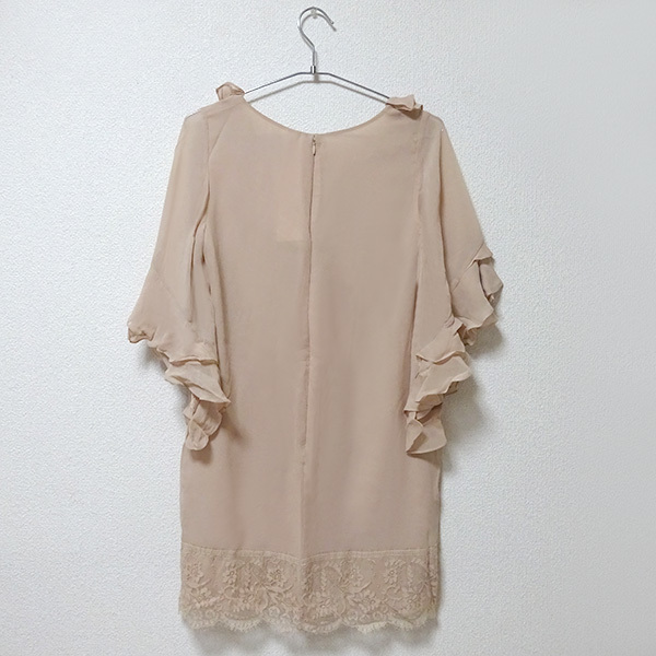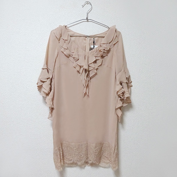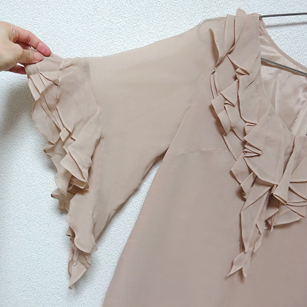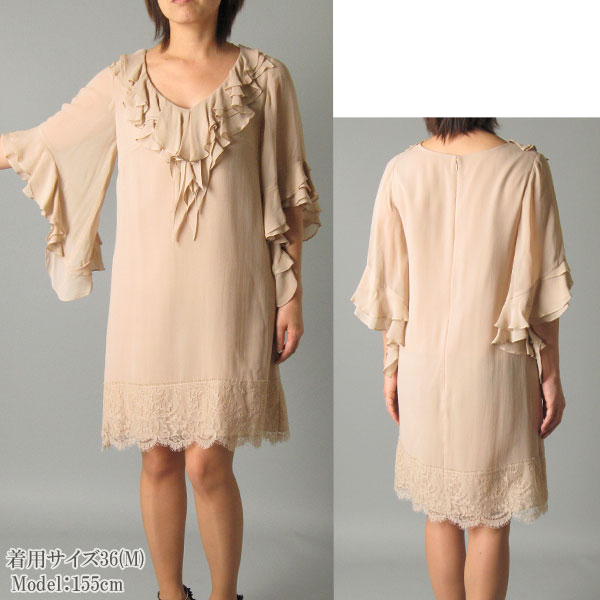新品 GRACE CONTINENTAL グレースコンチネンタル ジョーゼットフリルワンピース シルク100% ベージュ 36 結婚式 パーティ