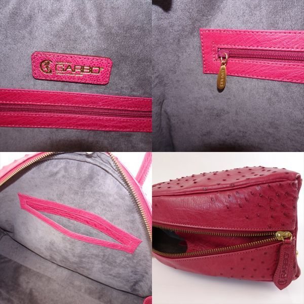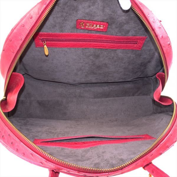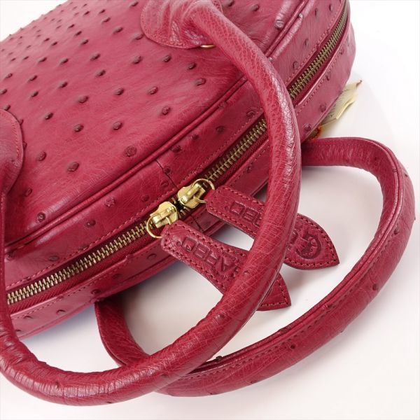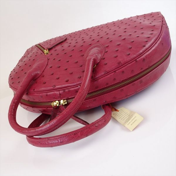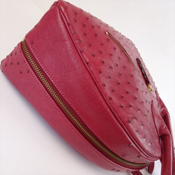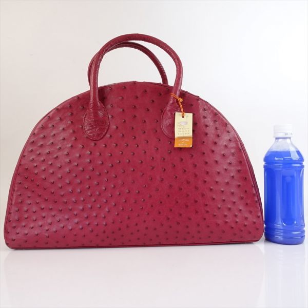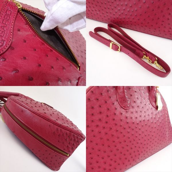 美品 オーストリッチ ボストンバッグ ショルダー 2WAY バッグ 赤 ワインレッド ボルドー レザーバッグ 大きい 収納 ハンドバッグ 4222