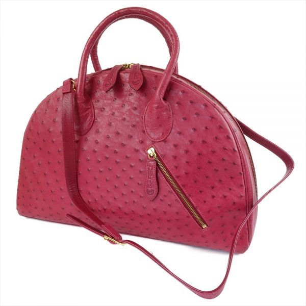 オーストリッチ 2WAYバッグ ワインレッド 4222