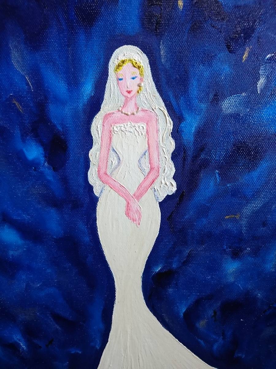 ≪国美協≫、佐藤めみ、『海の花嫁』、油彩画、F6号:40,9×31,8cm、油絵一点物、新品高級油彩額付、直筆サイン・真作保証付