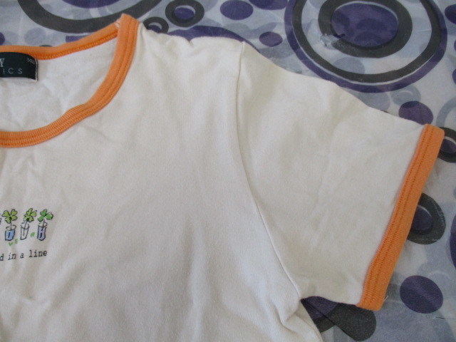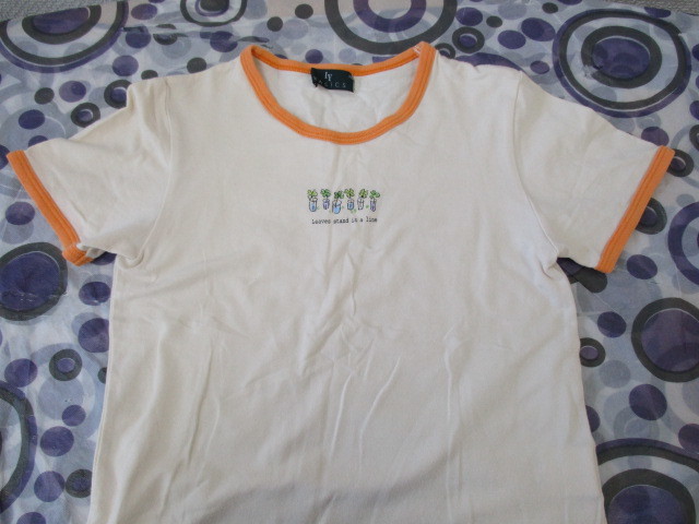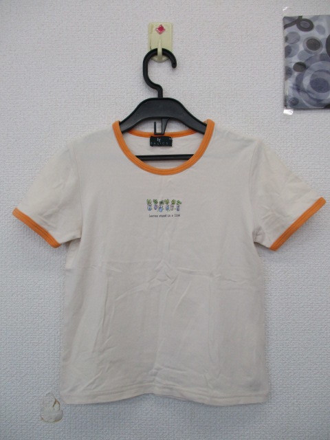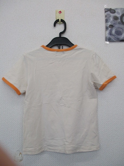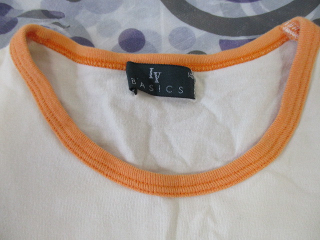 ★IY BASICS 女の子半袖Tシャツ ワンポイント クリーム×オレンジ (140)