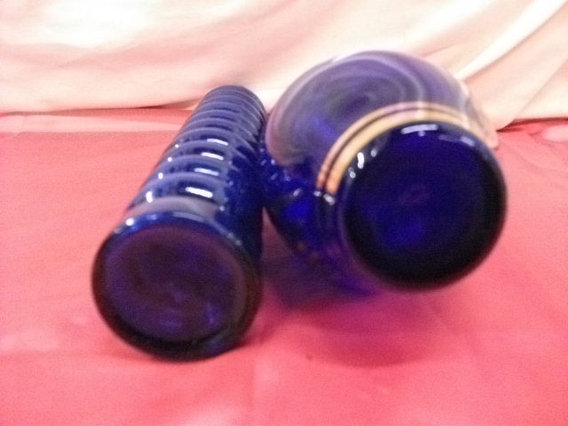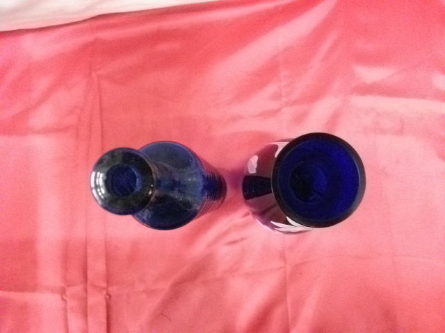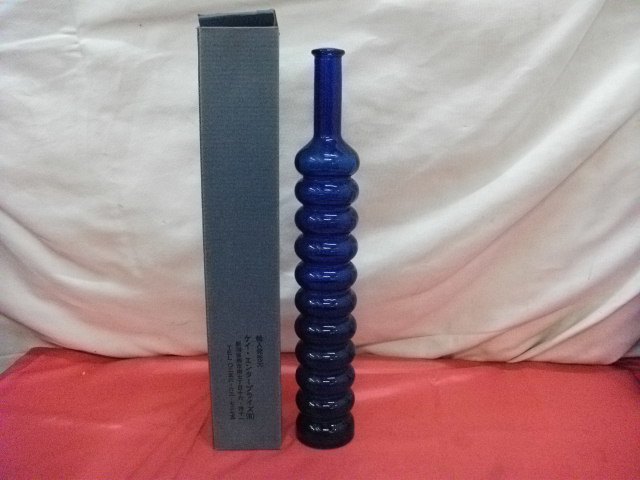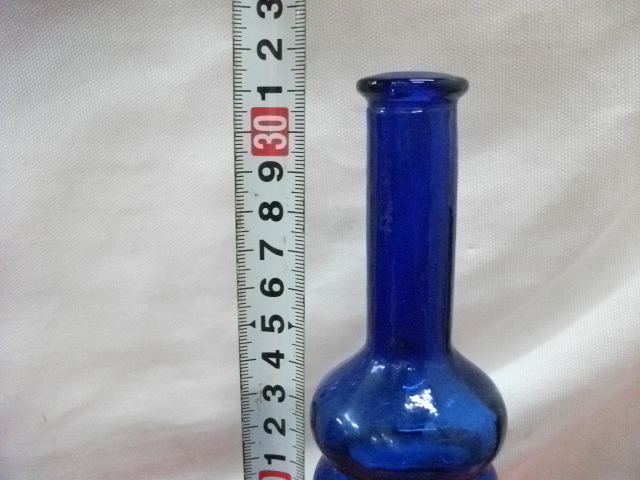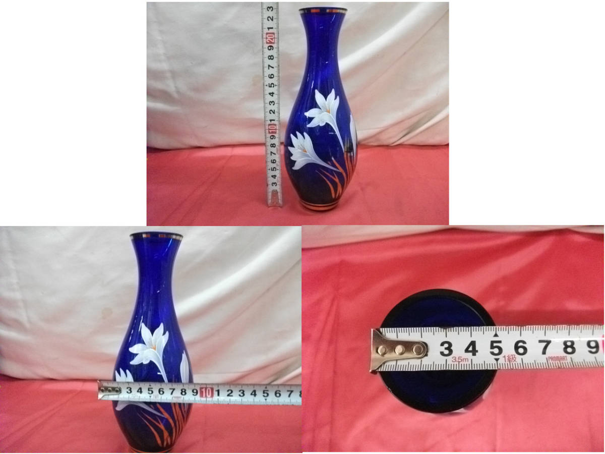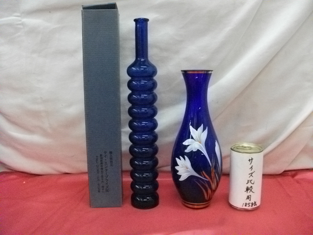 ガラス製 花器 花瓶 一輪挿し アドリア 青色 花図等 2点