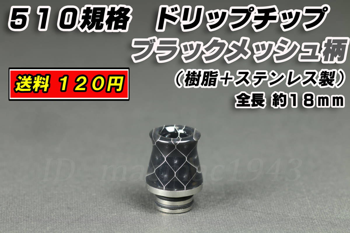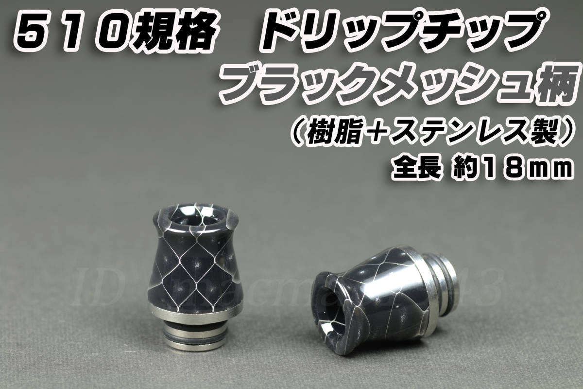 | 商品名 | VAPE用(電子タバコ) 510規格サイズ ドリップチップ 材質:樹脂+ステンレス製 全長:約18mm お色:ブラックメッシュ柄 になります 新品未使用商品です |