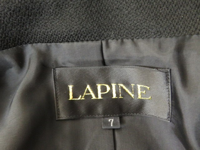 ■上質美品【LAPINE】ラピーヌ高級ウールブラックフォーマルジャケット 7号~9号SM 胸当て付きジャケット j755