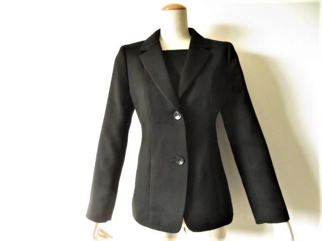 ■上質美品【LAPINE】ラピーヌ 高級 ウール ブラックフォーマル ジャケット 7号 9号 SM 胸当て付きジャケット ジャケット 黒 j755
