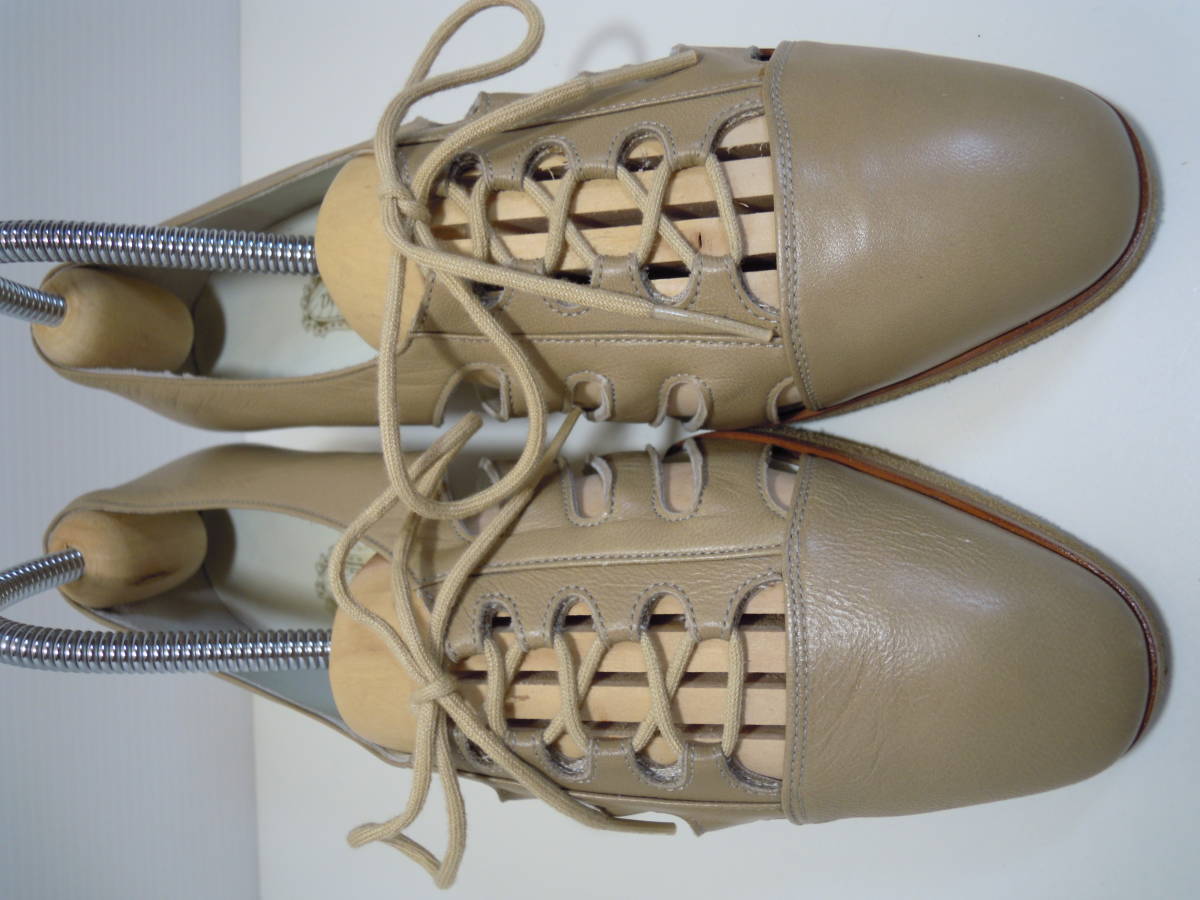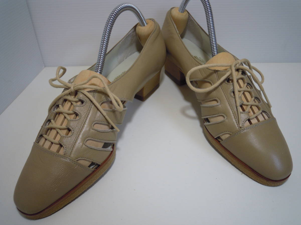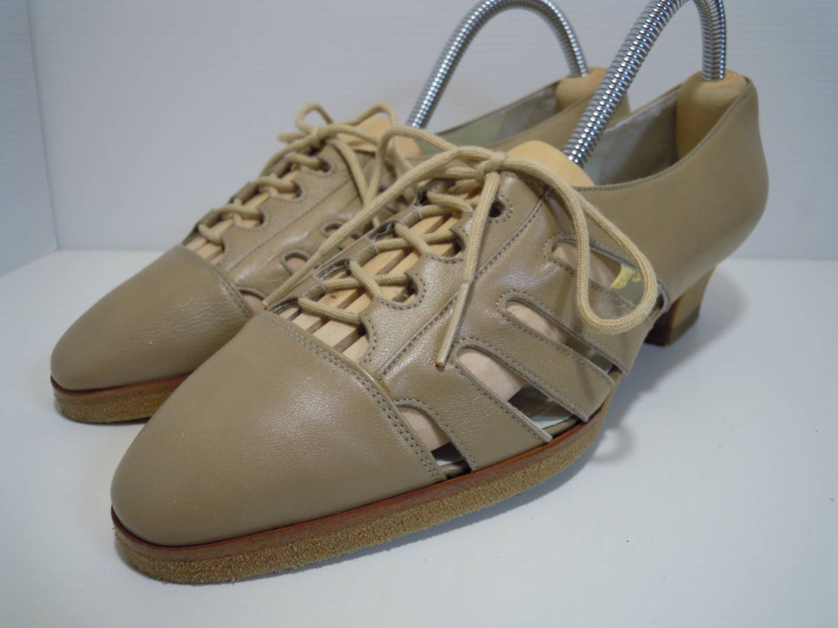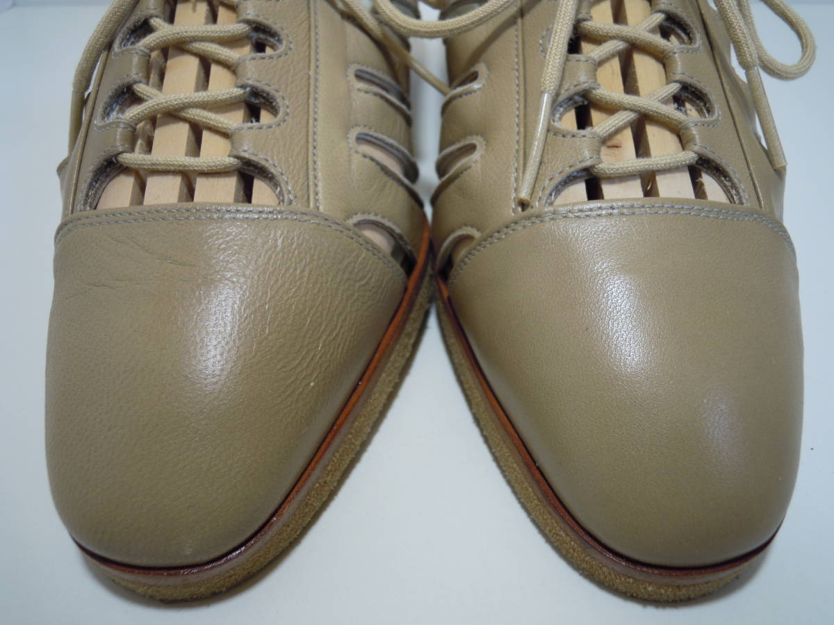 【ブランド・形態】 銀座ヨシノヤ 透かしデザイン 軽量レースアップシューズ サイズ23.0cmです。 【カラー】 カーキです。 掲載の実物写真はPC環境や光の加減により実物と色合いが若干異なる場合があります。 【特徴】 銀座ヨシノヤの洗練されたシルエットが魅力のレースアップシューズです。 透け感のあるデザインは、オンオフ問わず幅広いシーンに活躍してくれます。 程よい高さのヒールで安定感があって歩きやすく、履き心地も良好です。 柔らかな上質なレザーを使用しており、大人のデイリーコーディネートに最適です。 返りが良く快適な履き心地で、軽量発泡ゴムのアウトソールは履き心地抜群。 ヒールがあるのでパンツにもスカートにもカッコ良く決まります。 ヒール高さ:約4.0cm、最大幅:約7.9cm 【状態】 あまり使用感が無く目立つようなシミ・ヨゴレなどはないです。 問題なくご愛用いただける状態かと思います。 アッパーは比較的にきれいです。 トップリフトは少し擦り減りがあります。 保管箱はありません。 【材質】 アッパー:本皮革 アウトソール:発泡ゴム 【サイズ】 23.0cm、 質量 本体315g #銀座ヨシノヤ | |||