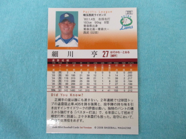 ★BBM 2008★1st Version〔375 細川亨 埼玉西武ライオンズ〕トレカ♪