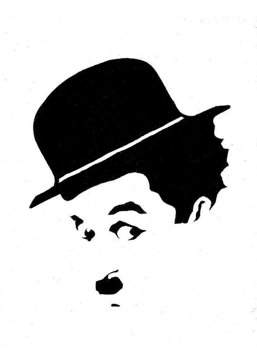 「かたり」のプロがうらやむパントマイムの王様、同年代に活躍したコメディアン、バスター・キートンやハロルド・ロイドと並び、「世界の三大喜劇王」と呼ばれているチャップリンのポップでキャッチーなシンプルデザイン。
