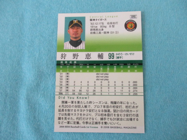 ★BBM 2008★1st Version〔090 狩野恵輔 阪神タイガース〕トレカ♪