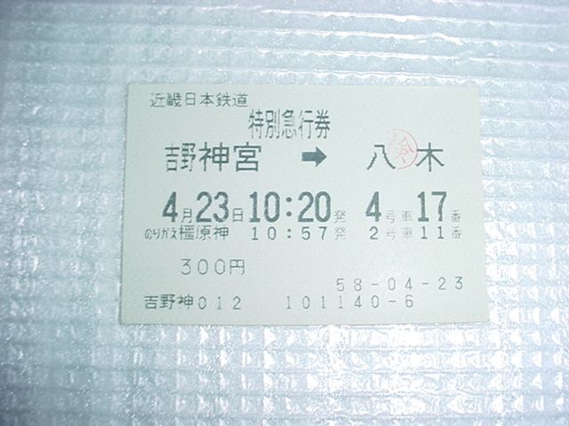 特別急行券 吉野神宮→八木