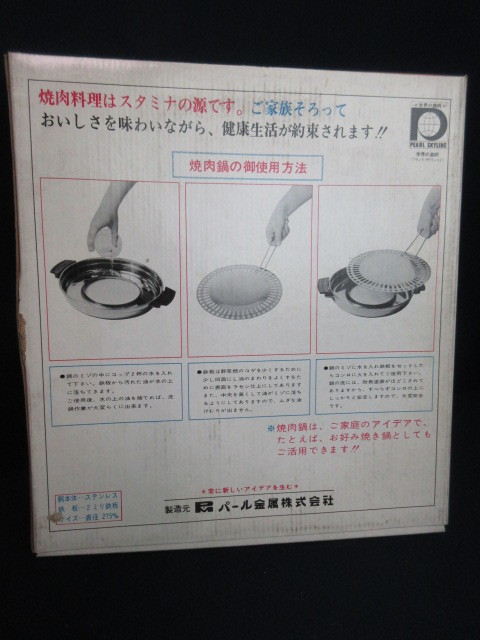 商品説明 | 【パール金属/焼肉鍋】両手鍋/キャンプ/バーベキュー/昭和レトロ 状態:未使用品。閉店されました古い金物屋からでた品物です。外箱ともにかなり古い品物で擦れ、サビ、傷、汚れ等、見受けられます。神経質な方の入札はお控え下さい。 ※かなり古い品物で、外箱ともに経年劣化等あるものと考えご入札願います。 サイズ約:W33xD26.5xH4.3cm(取っ手含む) ゆうパック:80 |