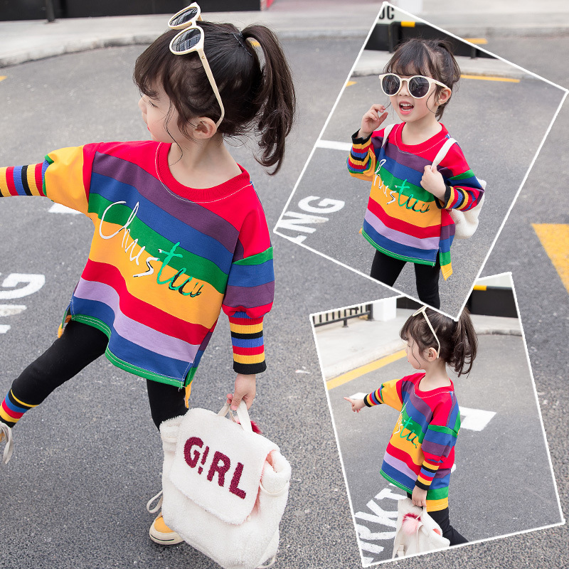 ガールズウェスタンスタイル ストライプ柄シャツレギンスのセット スポーティーカジュアル