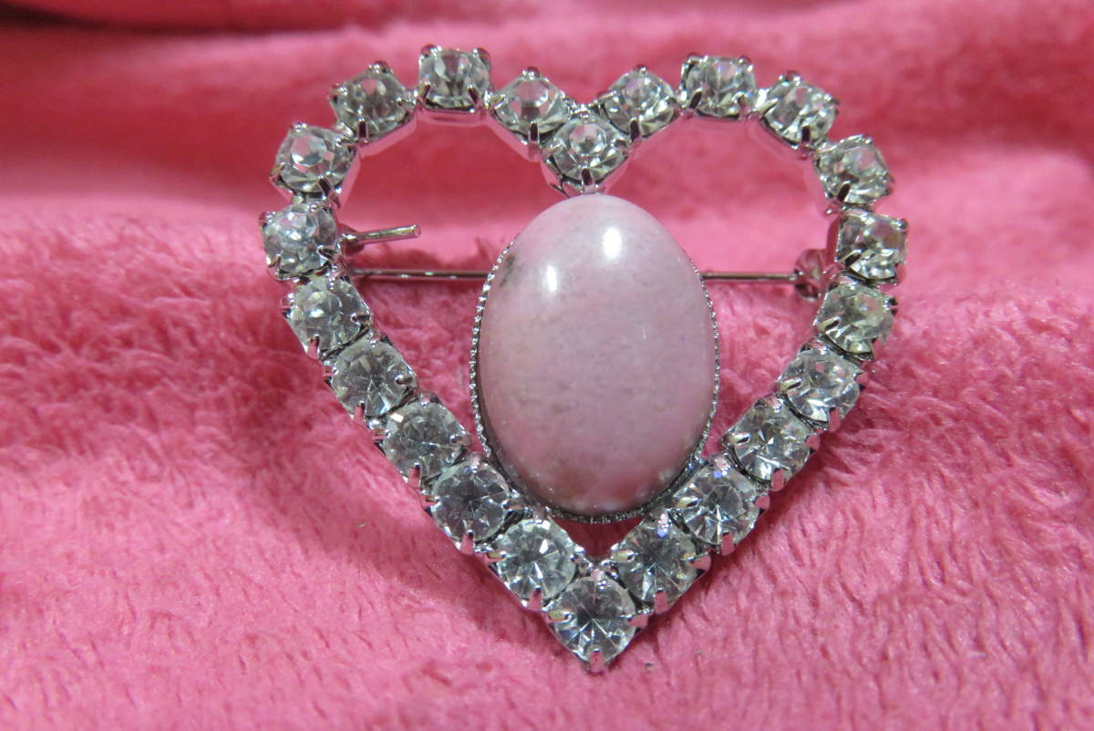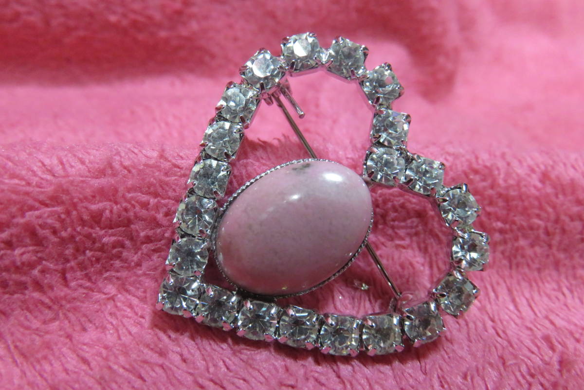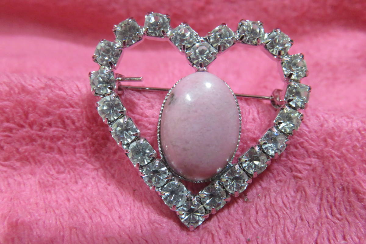 T2478  ブローチ  ラインストーン  ハート  天然石