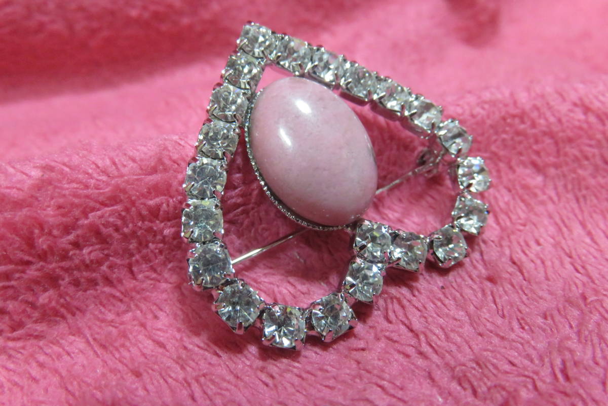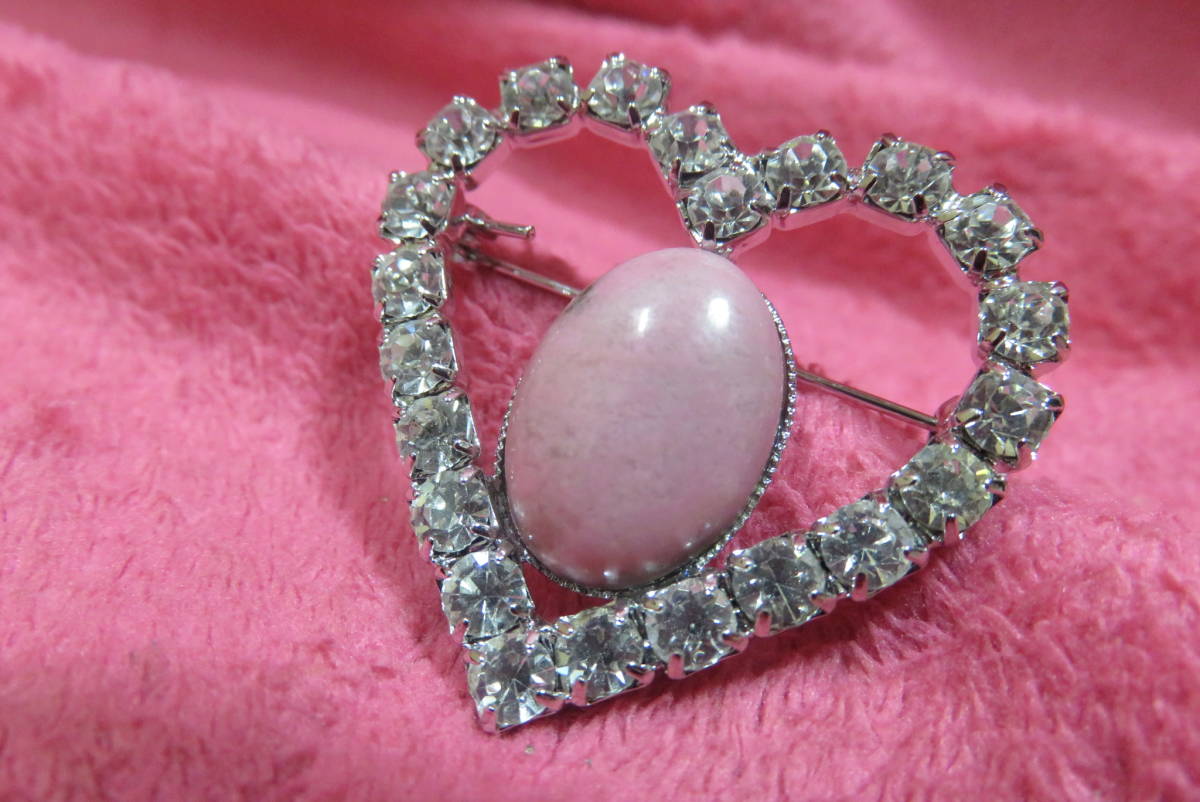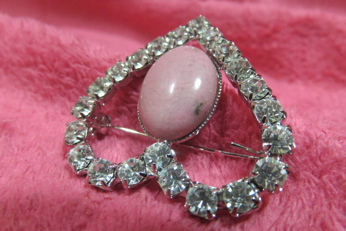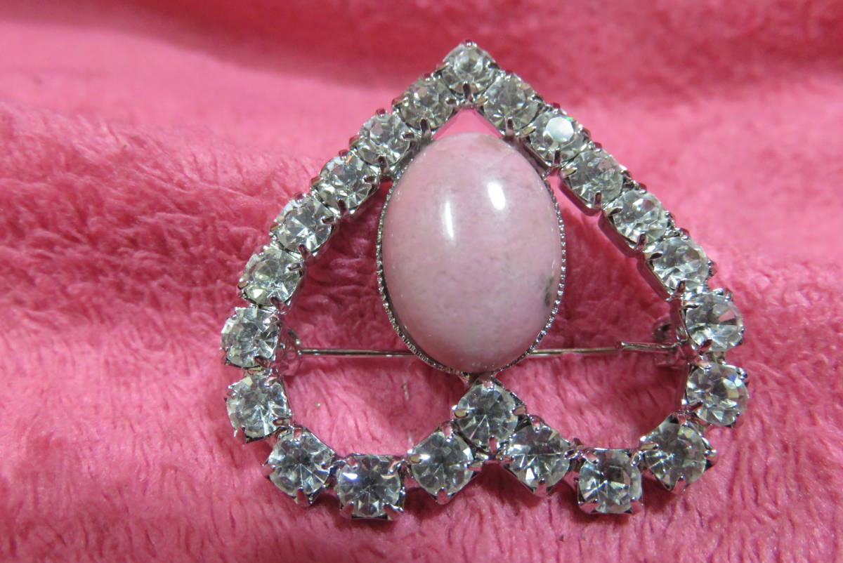 T2478  ブローチ  ラインストーン  ハート  天然石