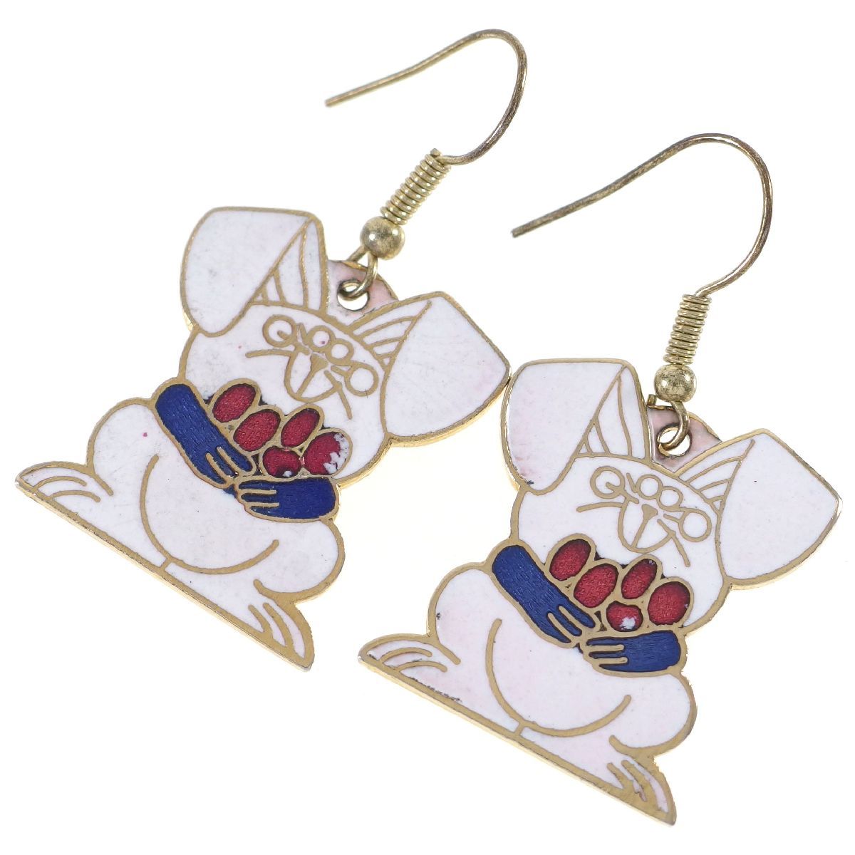UK705◆ うさぎ ラビットモチーフ イースターバニー * クロワゾネ エナメル 七宝焼き ◆ ヴィンテージピアス * イヤリング ◆