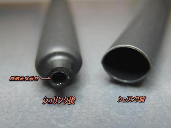 チューブ内面は熱融着の接着材が施されていますので、防滴効果も高く難燃性も兼ね備えています。