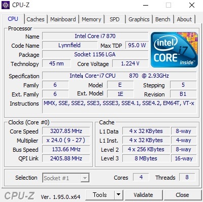 Core i7 870:4コア/8スレッド 2.93GHz-3.60GHz
