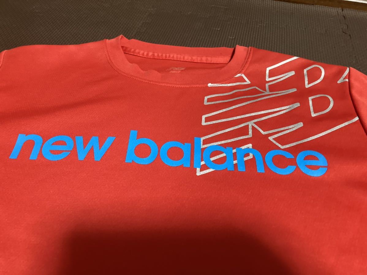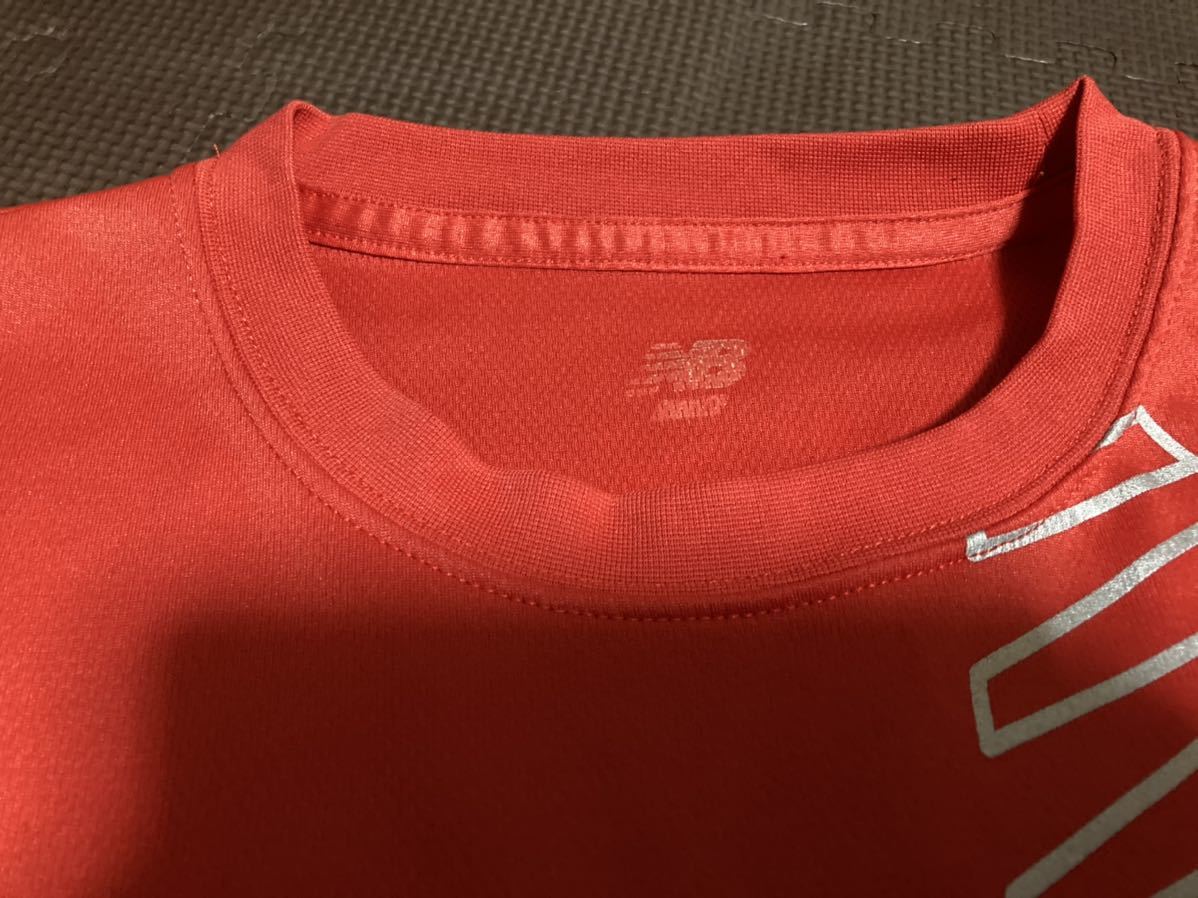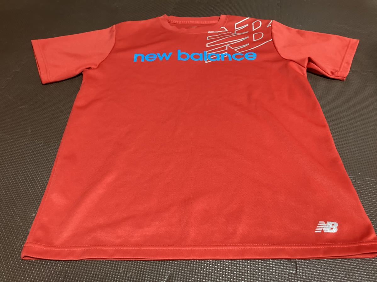 美品ニューバランス赤、ロゴ青、シルバー半袖ストレッチトップス
