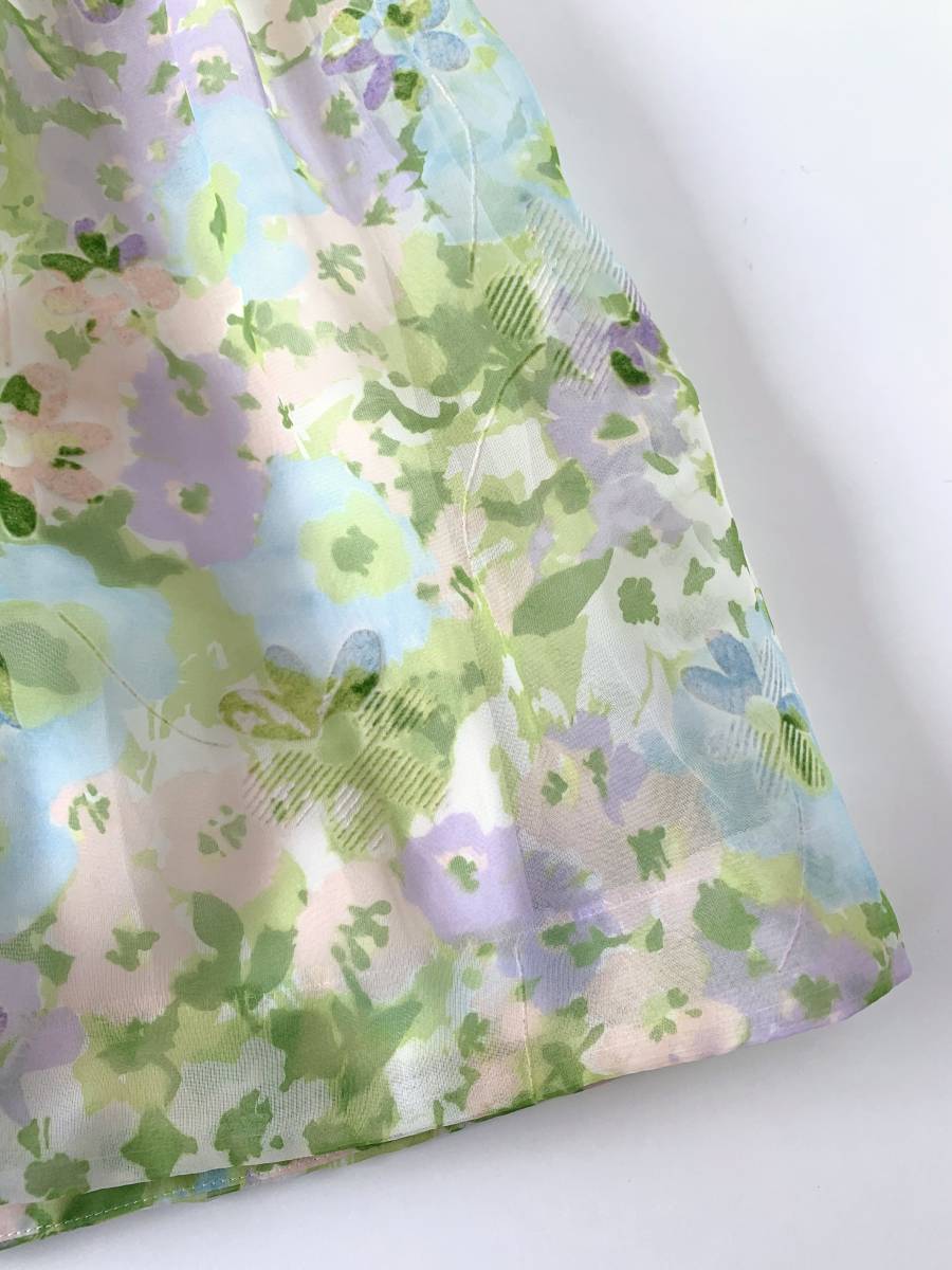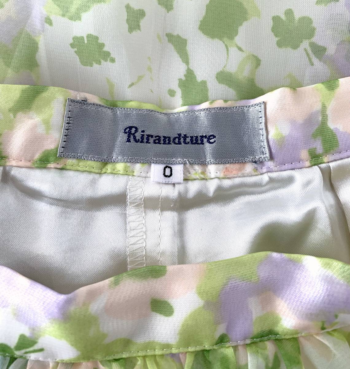 ★送料無料 美品 Rirandture リランドチュール ボトムス フレアースカート ライトグリーン 花柄 サイズ0 レディース 女性用