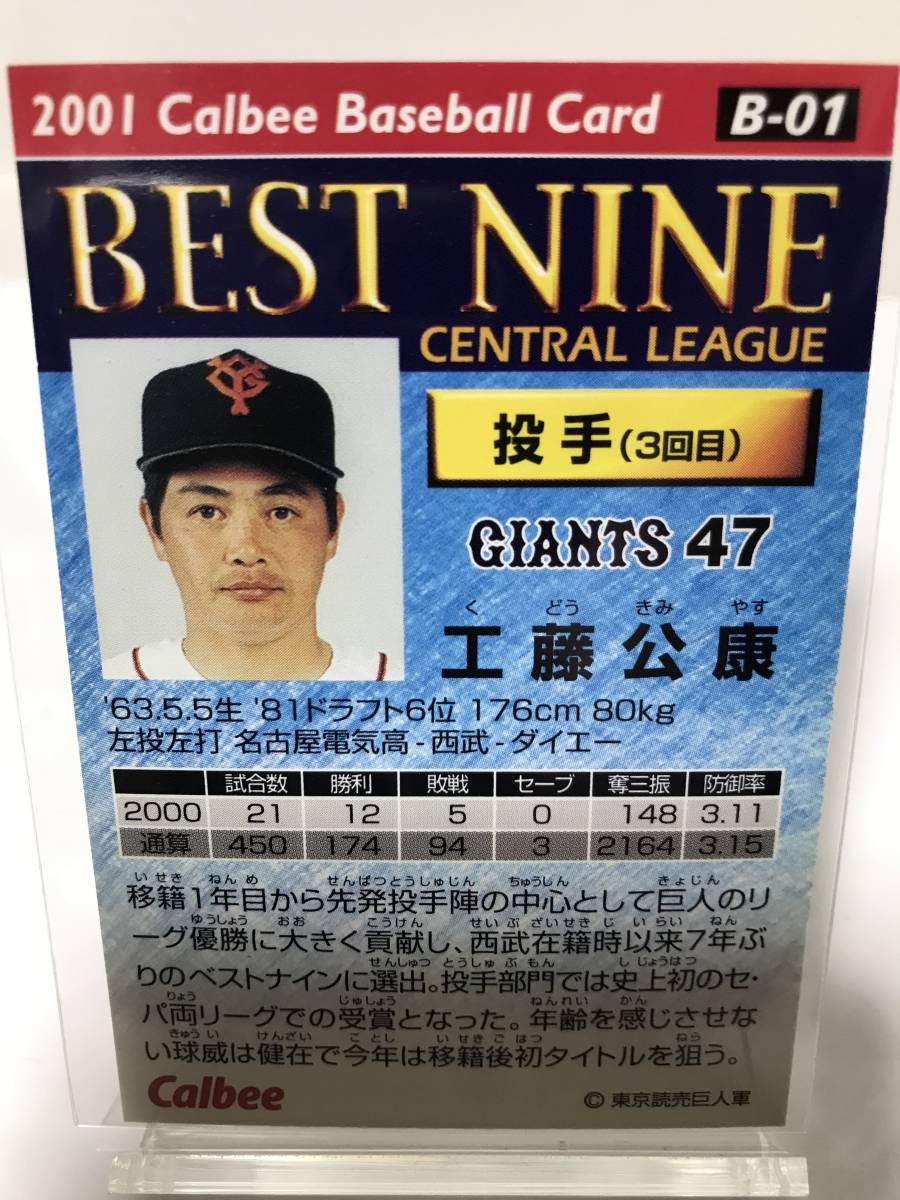 工藤公康 カルビー 2001 B-01 ベストナインカード 読売ジャイアンツ