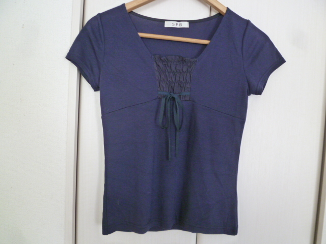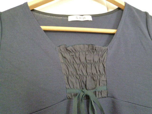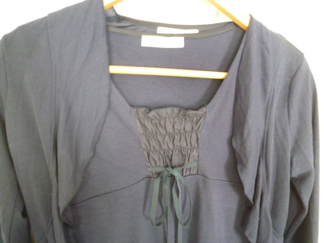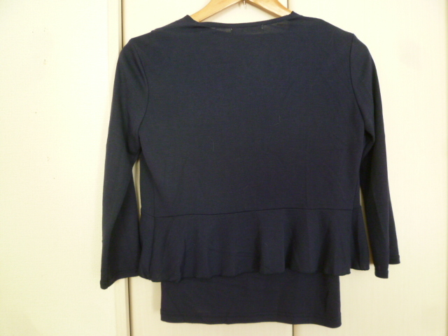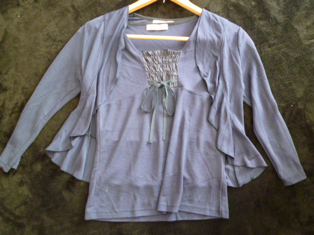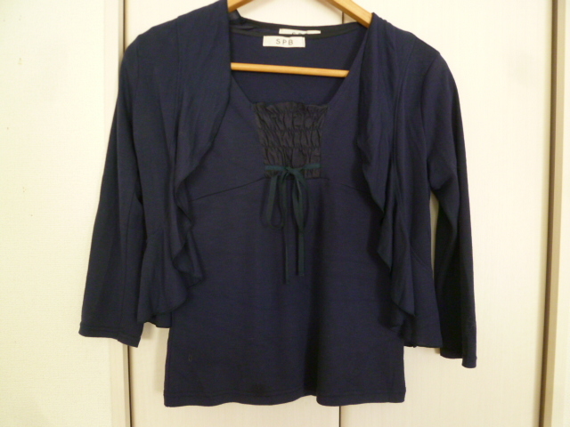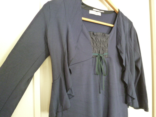 SPB/エスビービー/ワールド△紺胸フリルリボンカットソー裾フリルボレロカーディガンツインアンサンブル2点セットM/ネイビー△T415