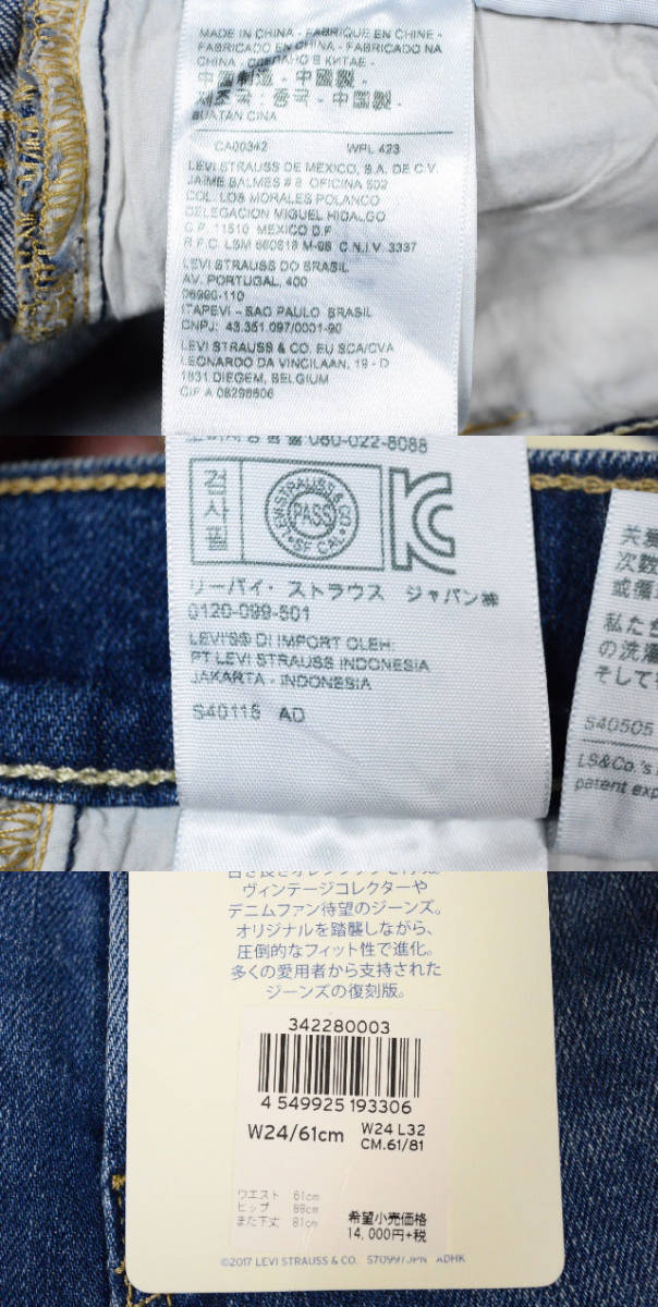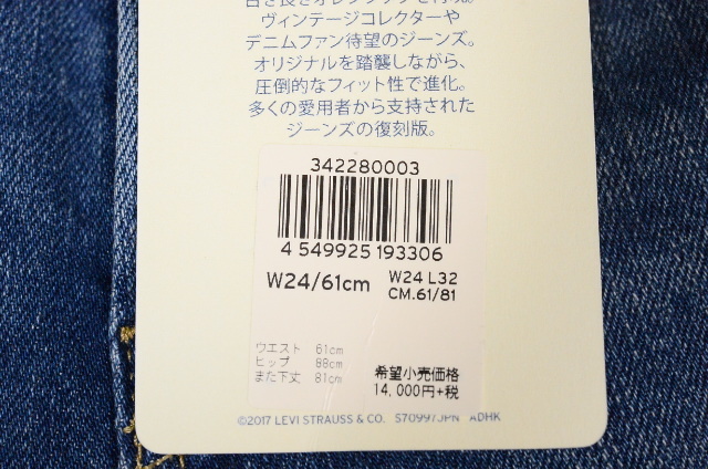 新品 W24 リーバイス721ヴィンテージ ハイライズスキニー 復刻版 (34228-0003)/ 股下81.5cm