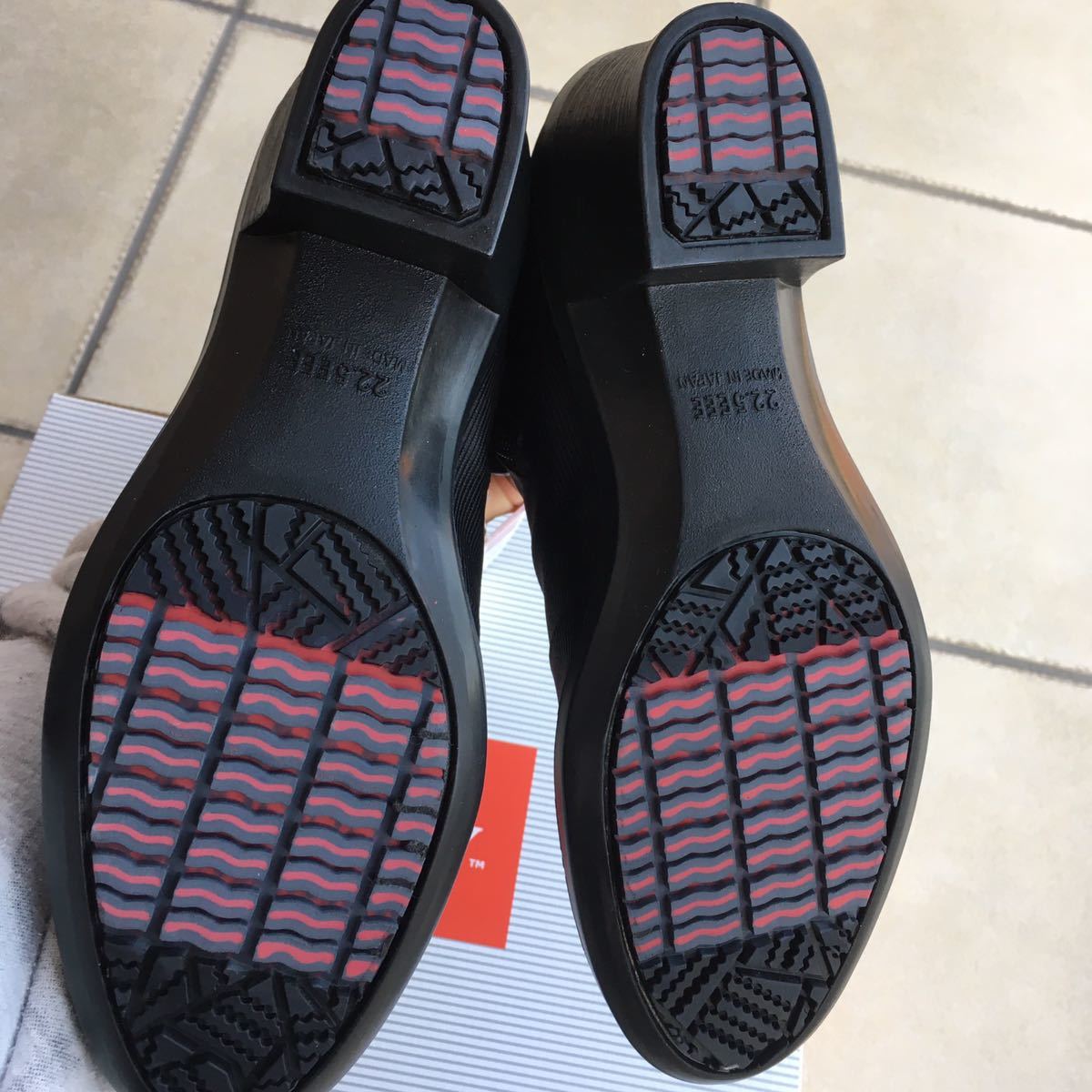 アッパー素材は、足当たりのやさしい素材の合成繊維と人工皮革(筒口)のコンビ組み合わせがエレガントさを演出。