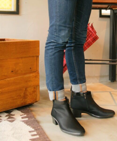 内側ファスナー仕様で脱ぎ履きしやすく、スタイリッシュでオフィスからオフの日まで幅広くお使いできるブーツです。