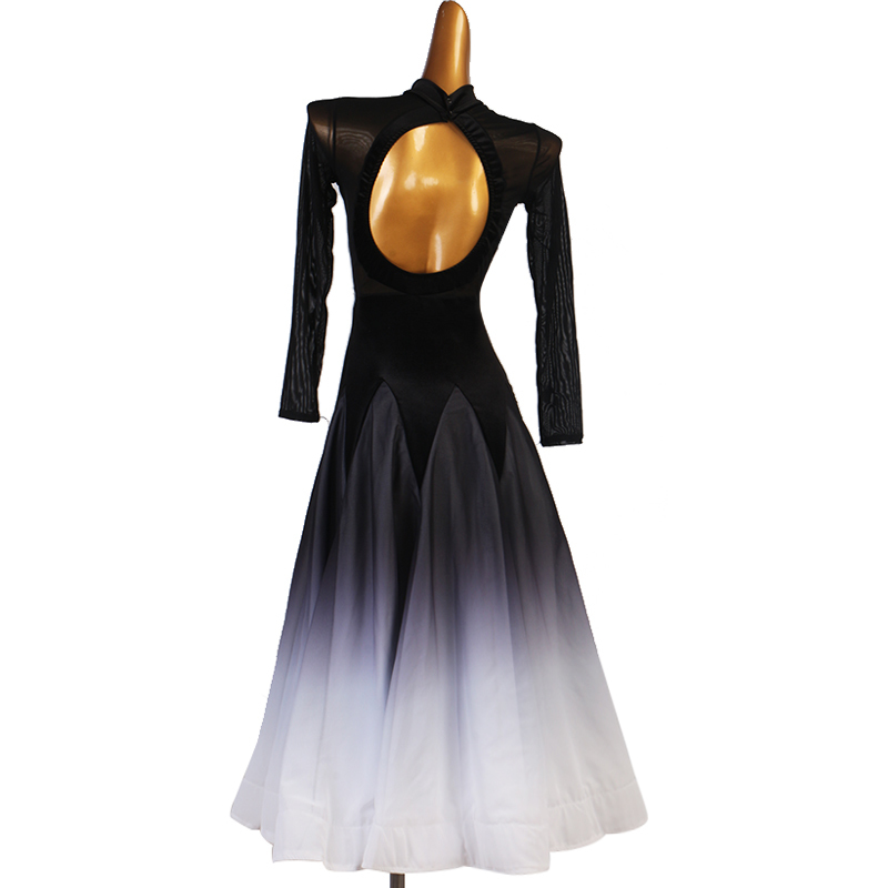 レディース社交ダンス衣装 ダンス競技ドレス 素敵グラデーション 新作 ブラック系 サイズ調整可 S~XXL