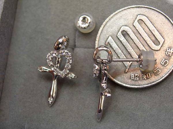 ♪耳元で可愛い【ハートと十字架】両方が個々にゆれます!動きのあるピアスをどうぞ!K18WG・天然ダイヤモンド0.14c+0.14c(0.28c)が留められています。上質で輝きの良いダイヤですから耳元がキラキラします。 【キャッチを除く本体総重量=2.7g・縦巾=20.15㎜・最大横巾=11.71㎜・最大厚=4.56㎜・針の長さ=11.12㎜・針の太さ=0.90㎜・キャッチはK18WGとシリコン製の外れにくいタイプです】 【送料・消費税・システム料・ケース、すべて無料!!】 ●注意●この商品は、他のサイトでも出品中ですので、万が一、そちらで落札された場合は、お譲り出来ないことをご了承下さい。 **【商品代金について】 消費税・システム使用料・落札手数料・送料すべて込みです。 【お届けについて】 すべての商品の送料込みの値段です。 (1万円以上の商品はヤマト便・手渡し。1万円未満は配達記録郵便です。) 【ご返品について】 万が一、お届け商品が偽物・欠陥品・不良品のみ商品のお届け日から3日以内 の場合は、まず電話かメールでご連絡頂いた上で返品をお受けします。 ご落札者様のご都合(イメージが違う・入札商品、入札価格の入れ間違い)での ご返品の場合は、落札手数料及びシステム使用料・送料をご負担頂きます。 また、事前にご連絡の無い場合・4日以上経過しての返品・使用後の返品・ サイズ直し後のご返品は、一切お受け出来ませんのでご理解下さい。 【キャンセルの場合】 ご落札後のキャンセルは、ヤフー評価システムにより自動的に【悪い評価】が ご落札者に付いてしまいます。ご理解の上のご入札・ご落札をお願いします。