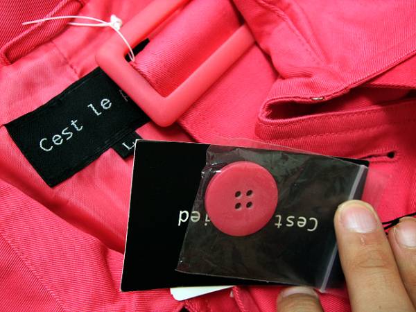 Cest le pied ピンクトレンチコートです。中綿入りではないですのでスッキリ着れます!ベルト付き。◆サイズはLで着丈約74.5cm・肩幅約39.5cm・袖丈約60cm・身幅約48cmです。◆タグ付き新品状態です。◆