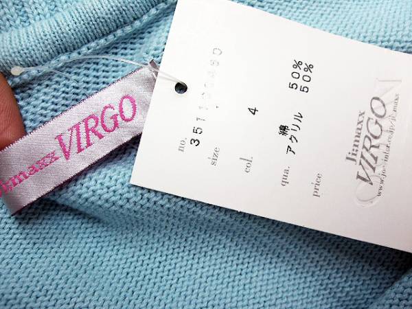 Ji;maxx VIRGO ニットカーディガンです。とっても爽やかなカラーの一着!◆綿50% アクリル50%◆サイズは無記入で着丈約66cm・袖丈(脇下から)約45cm・身幅約46cmです。◆タグ付き新品状態です。◆