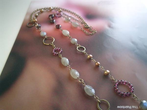 巴里・シベールシリーズです♪少女モード入ります・・ロマンチックな石を集めて♪可憐なネックレスです♪スモーキークォーツやラブラドライトやガーネットなどシックな大人色でまとめました♪スモーキークォーツは8ミリのヘキサゴンや10ミリのコインカット、ラブラドライトは8ミリのコインカットや10×8ミリのオーバルカット、ガーネットは8ミリのコインです♪極小のガーネットリングや淡水パールのポテトを合わせて個性的な表情です♪繊細な色とデザインの石がシーンを選ばないで楽しんでいただけると思います♪長さは全長92センチ位で調節自由です♪2連にされても素敵です♪長さ違いのネックレスやお揃いのブレスレットも出品予定です♪♪シンプルで飽きのこないいつまでも着けられるデザインを考えて作りました!ハンドメイドをご理解頂いてノークレーム、ノーリターンでお願いします