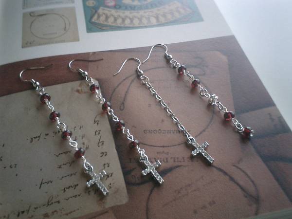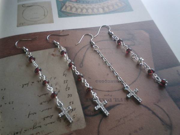 女の子チック・・シリーズです♪乙女の祈り・・ガーネットとクロスのピアス4本セットです♪ペアが1組とデザイン違いが2本で合わせて4本セットです♪いろいろな組み合わせで楽しんでいただけます♪ガーネットは6ミリのロンデムです♪同じ6ミリのジルコニアのロンデムやクロスを合わせて儚げな表情です♪長さは左からペアが8・5センチ、左から3番目が8センチ、4番目が8センチ位です♪イヤリングにも変更出来ます♪♪お揃いのネックレスやブレスレットも出品しています♪シンプルで飽きのこないいつまでも着けられるデザインを考えて作りました!ハンドメイドをご理解頂いてノークレーム、ノーリターンでお願いします