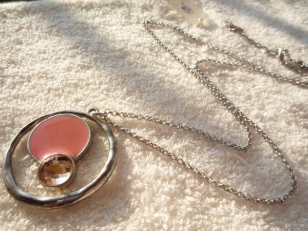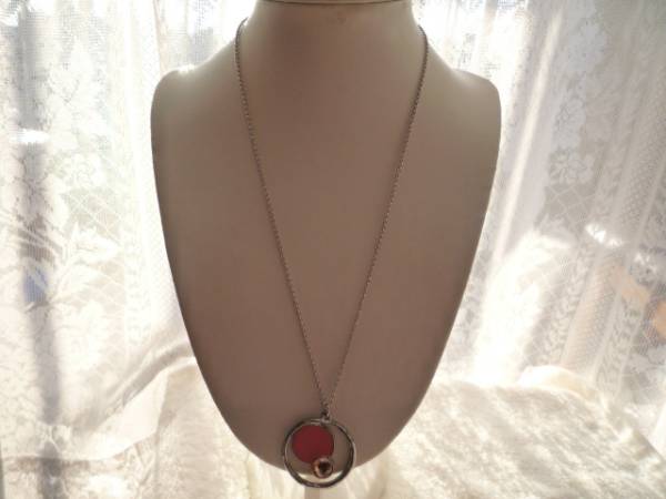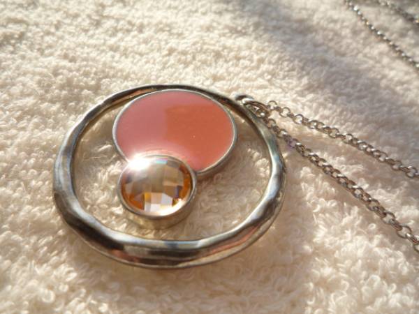 ●シルバー色の輪の中に丸い飾りとガラスが付いたお洒落なネックレスです。