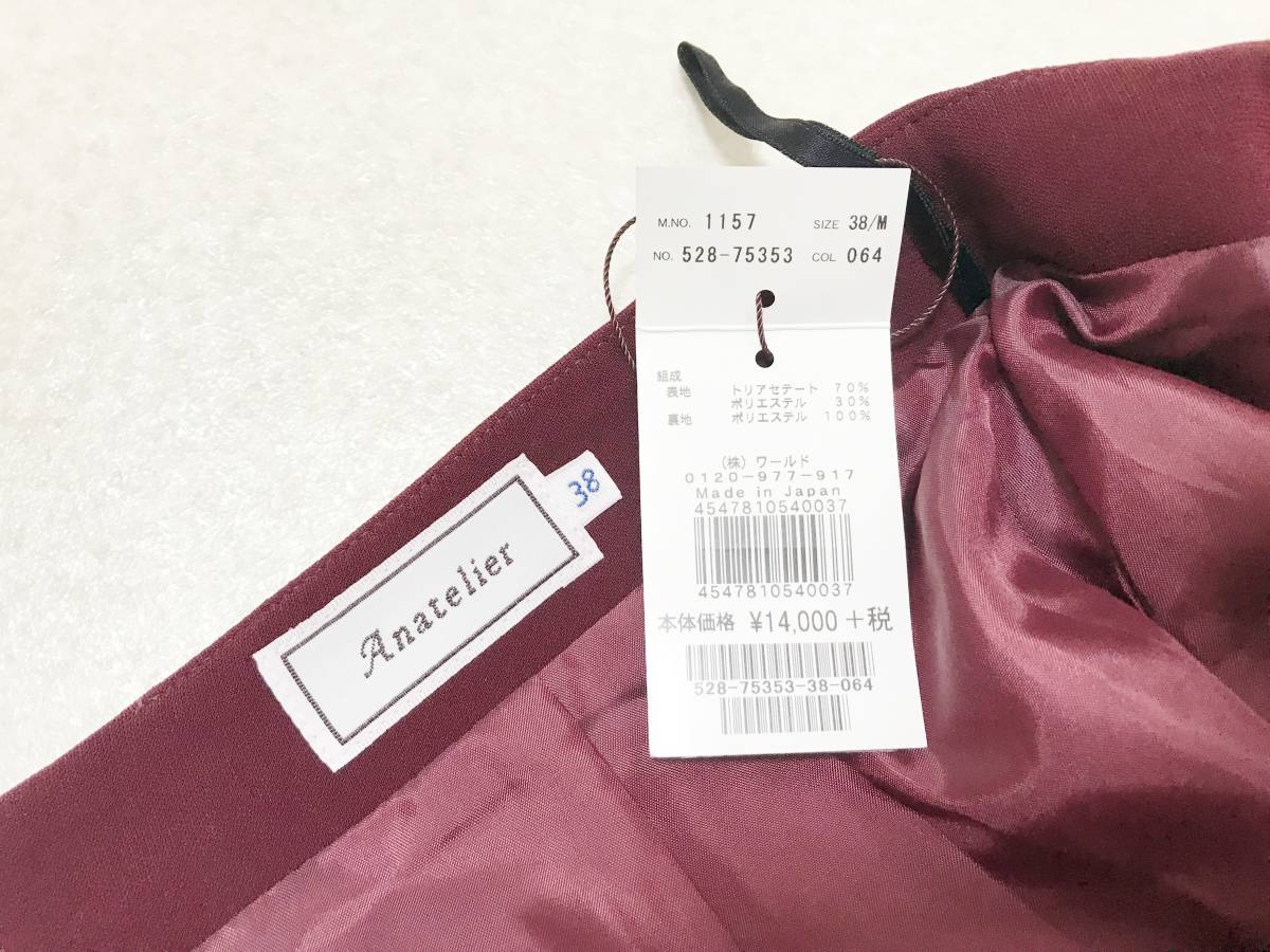 anatelier ㈱ワールド 定価:14,000+税 サイズ表記:38/M お色め:064 ボルドー赤 系 表地:トリアセテート70%・ポリエステル30% 裏地:ポリエステル100% ●平置き採寸●(参考) ウエスト/約35.5㎝ 着丈/約49.4cm 未使用品ですが、自宅保管にご理解頂ける方のご入札ご検討願います。 ◆細かい点(ご利用に問題のない程度の小さな傷・匂い・汚れ・シワ等) は素人検品の為記載漏れがあることをご理解願います◆ ◆洋服のようなものは保管・発送時のしわをご理解ください。 ◎照明・パソコンの色彩環境等の違いから 掲載の画像と実物の色味が異なる場合がございます。 ★発送について★ ◆全国送料無料・・・当方指定の発送方法◆ 追跡のある方法でお送り致します。 ◆土日祝はお休みを頂いております。基本的に発送は出来ません。◆ ◆平日11時頃までのご入金確認で当日発送を心がけておりますが 対応出来ないときもありますので ご入金確認後の翌日~3日程度の発送でご理解ください◆ ★長期のお休みは自己紹介にて記載しております。 お手数ですがお急ぎの場合は一読お願いします。 | |||
