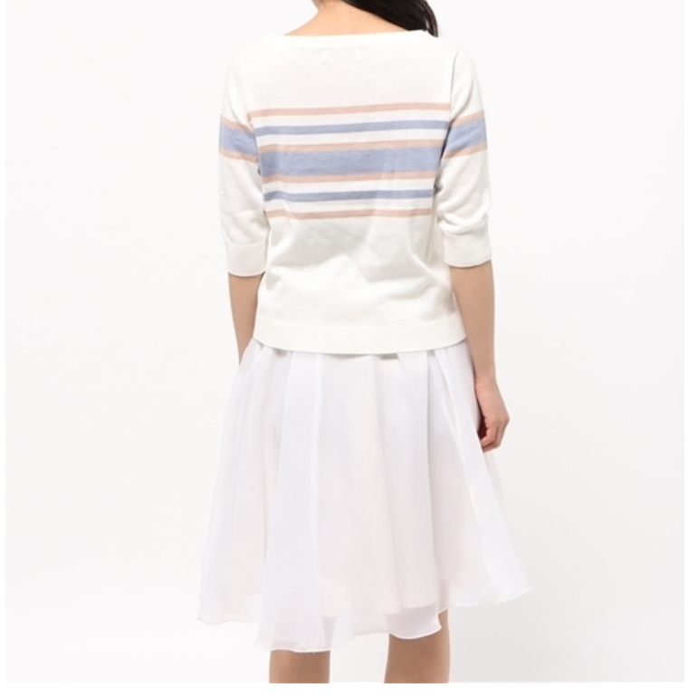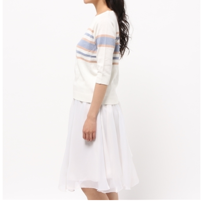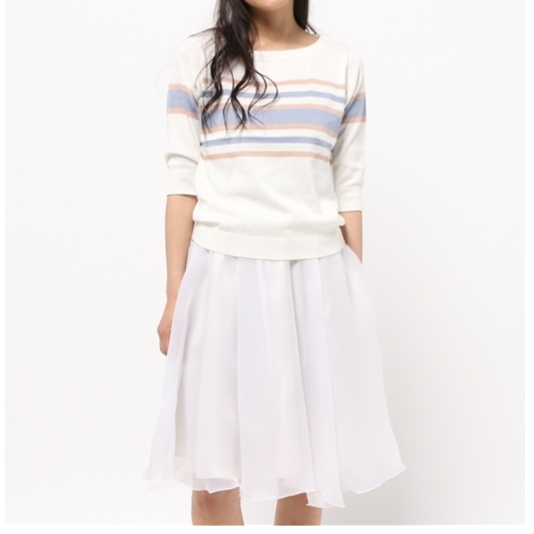 半端丈のニットトップス&ふわふわした白スカートが可愛いです♪