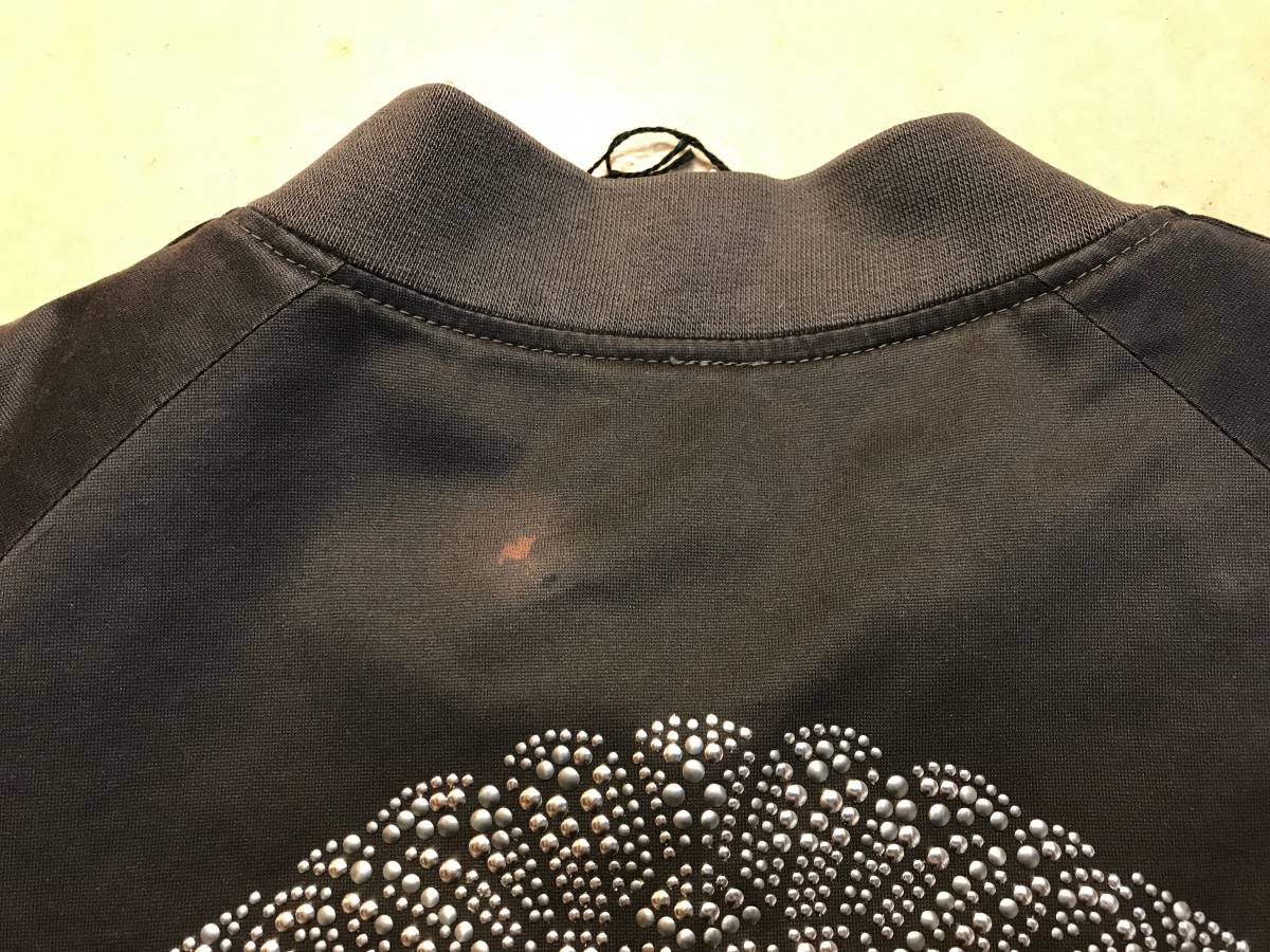 背中上部に色ヌケありますが、パーカーを着用すると隠れる位置です。(写真参照)