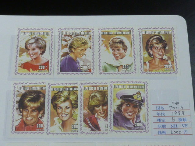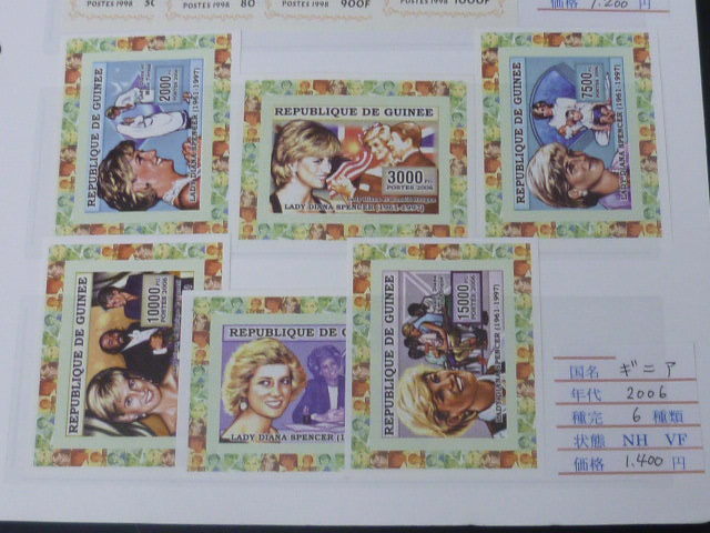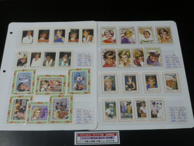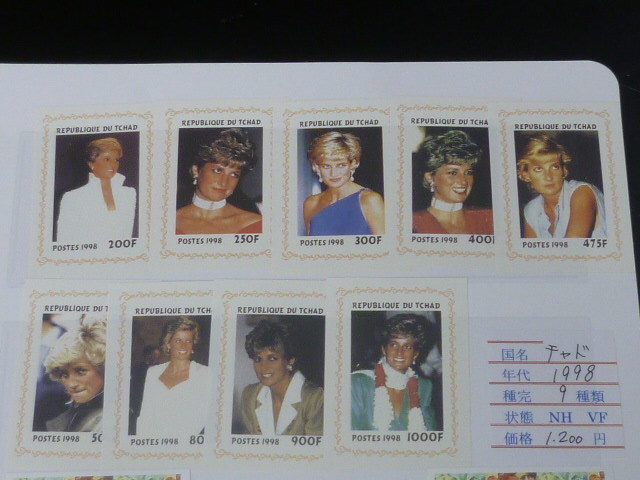 19 P №8 プリンセス ダイアナ妃追憶記念 フランス領各国 1997-2006年 チャド・ギニア・アフリカ(4組)・他 4ヵ国 各完揃 31種 各2組 未使用