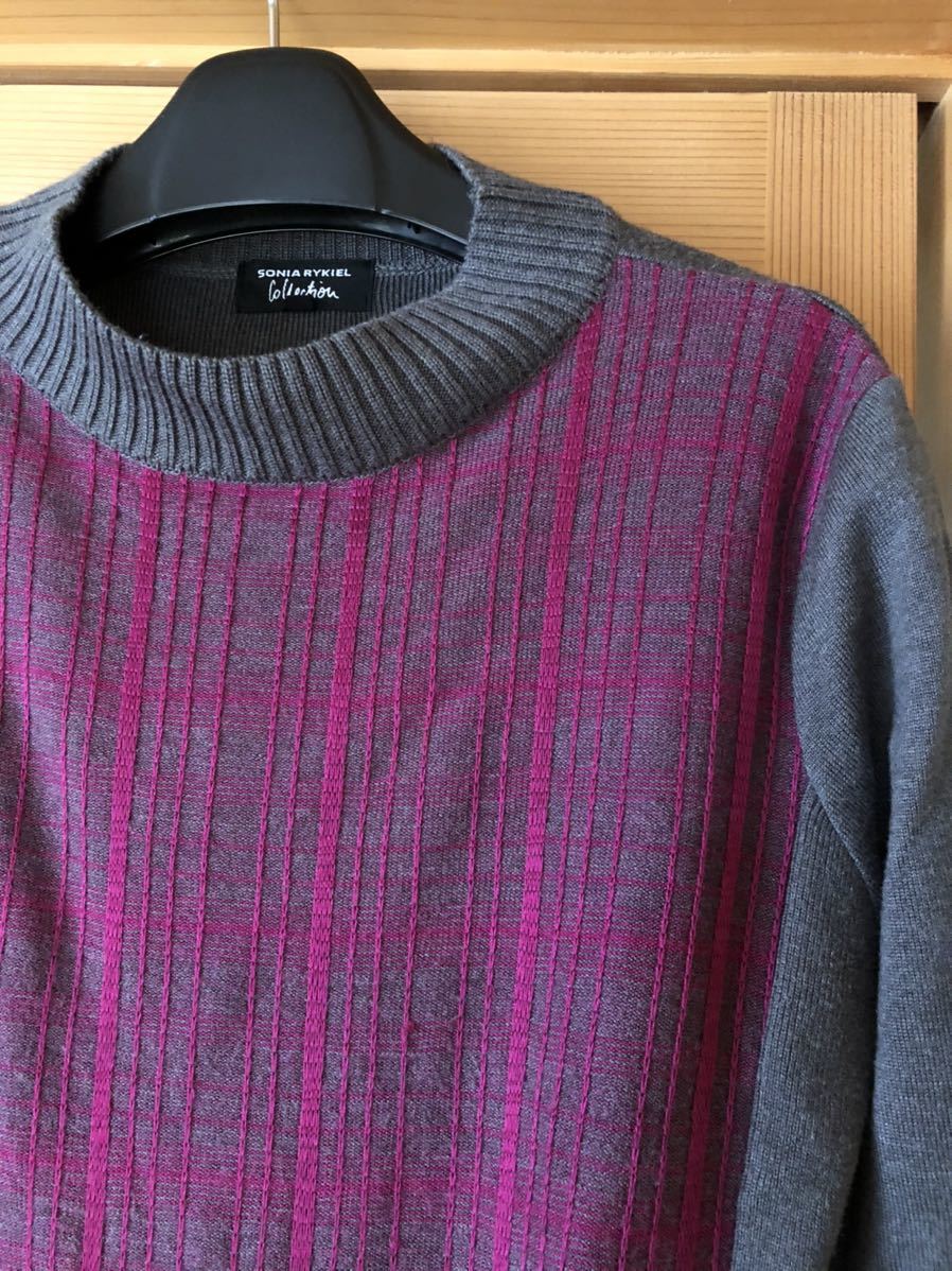 ソニアリキエル のニットワンピースです。 フロントのピンクの切り替えデザインも、着用時のシルエットとても素敵です。 お色はグレー×ピンク系です。 着用時のシルエットも大変素敵です。 とても気に入っていましたので着用感あります。 毛羽立ち、毛玉ややあります。 大事にしておりましたので、上記他着用に困る大きな難はありません。 まだまだ素敵に着用可能かと思います。 サイズ表記M(実寸で着丈約93cm、身幅約53cm、肩幅約42cm) 素 材は表地:アクリル、レーヨン、ウール他 気に入って下さる方に。 |